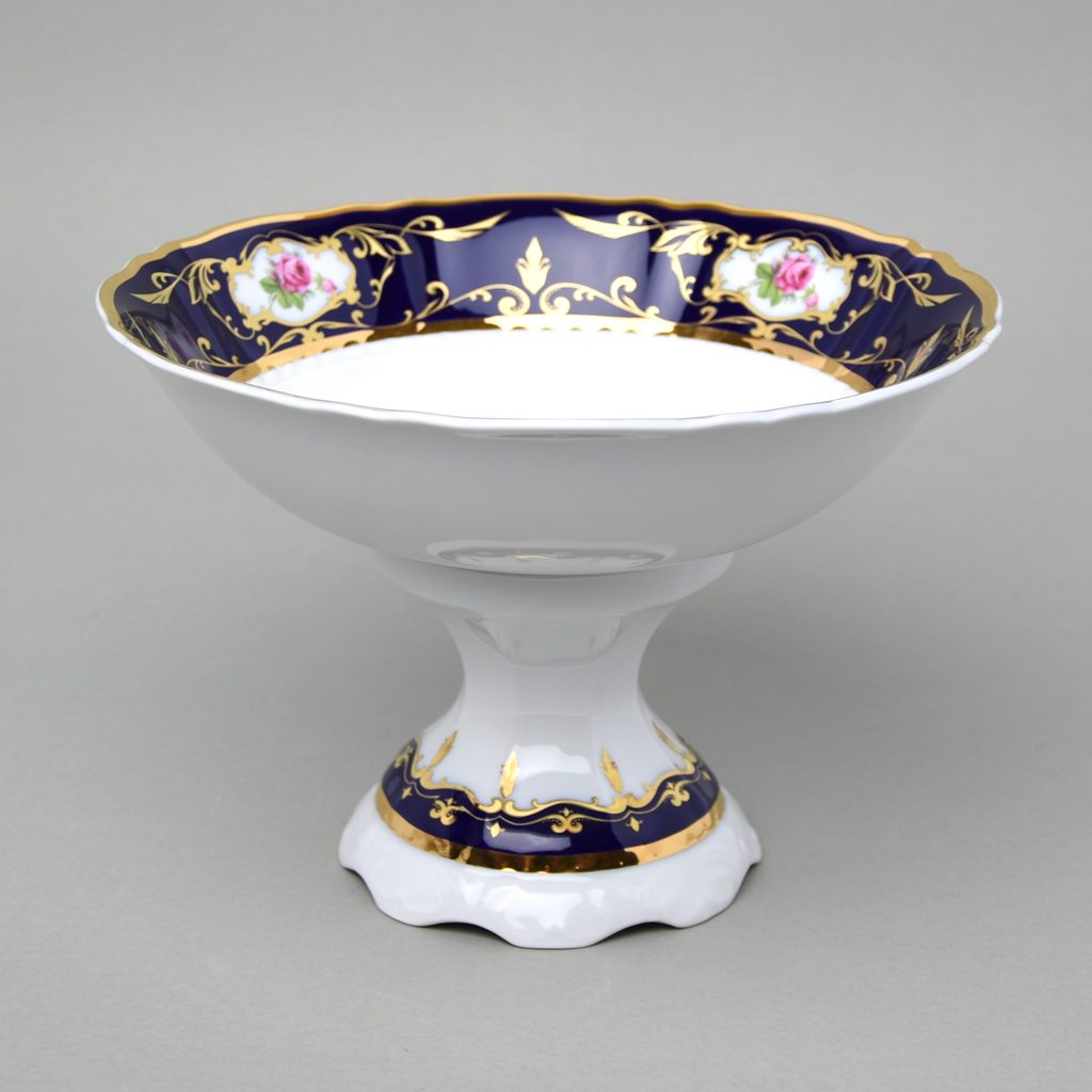 mísa 16 cm vysoká na noze s honosným dekorem číslo 440 (růžičky + kobalt + zlato) z Leanderu Loučky