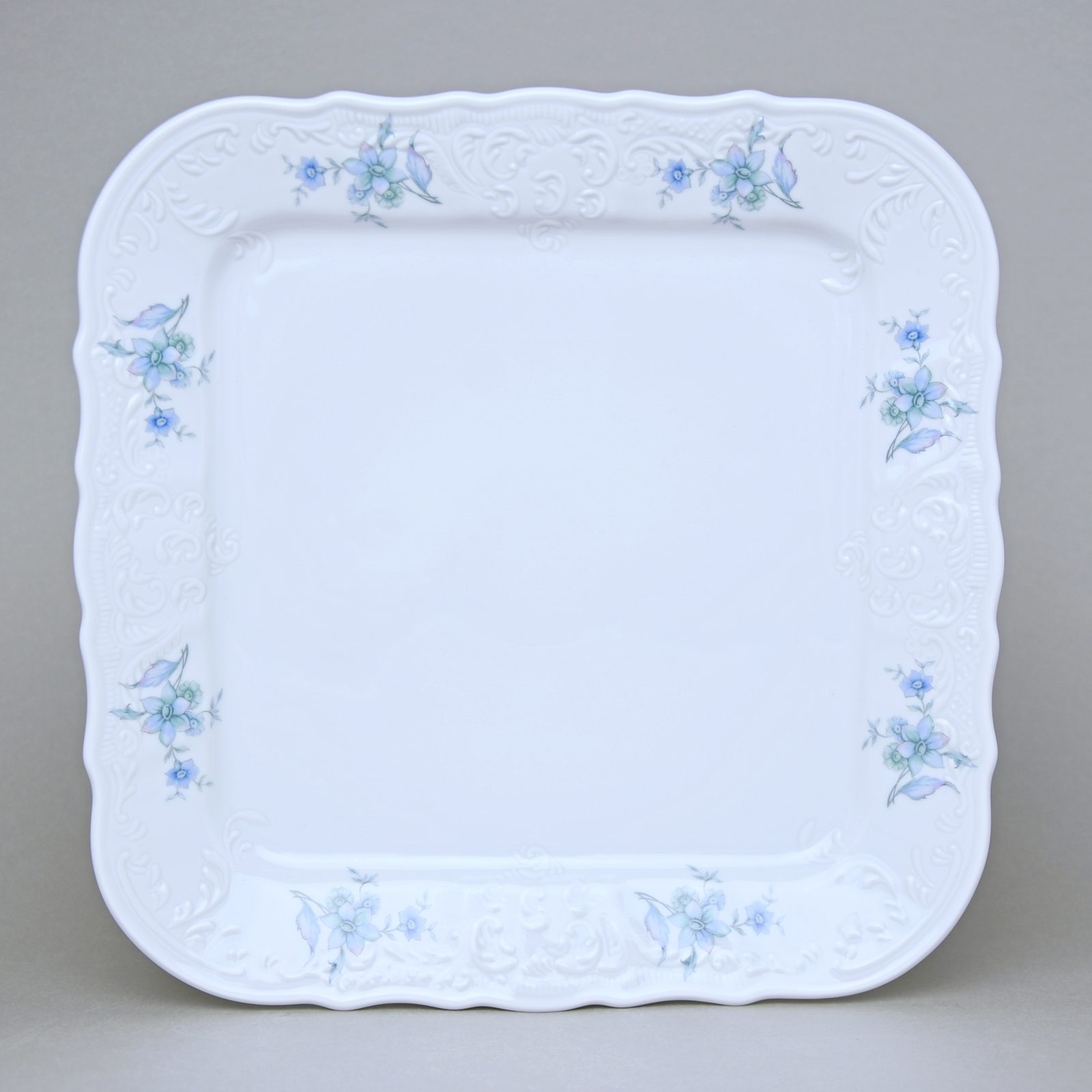 BERNADOTTE modrý květ: Podnos 4-hranný 26 cm, Thun 1794, karlovarský porcelán
