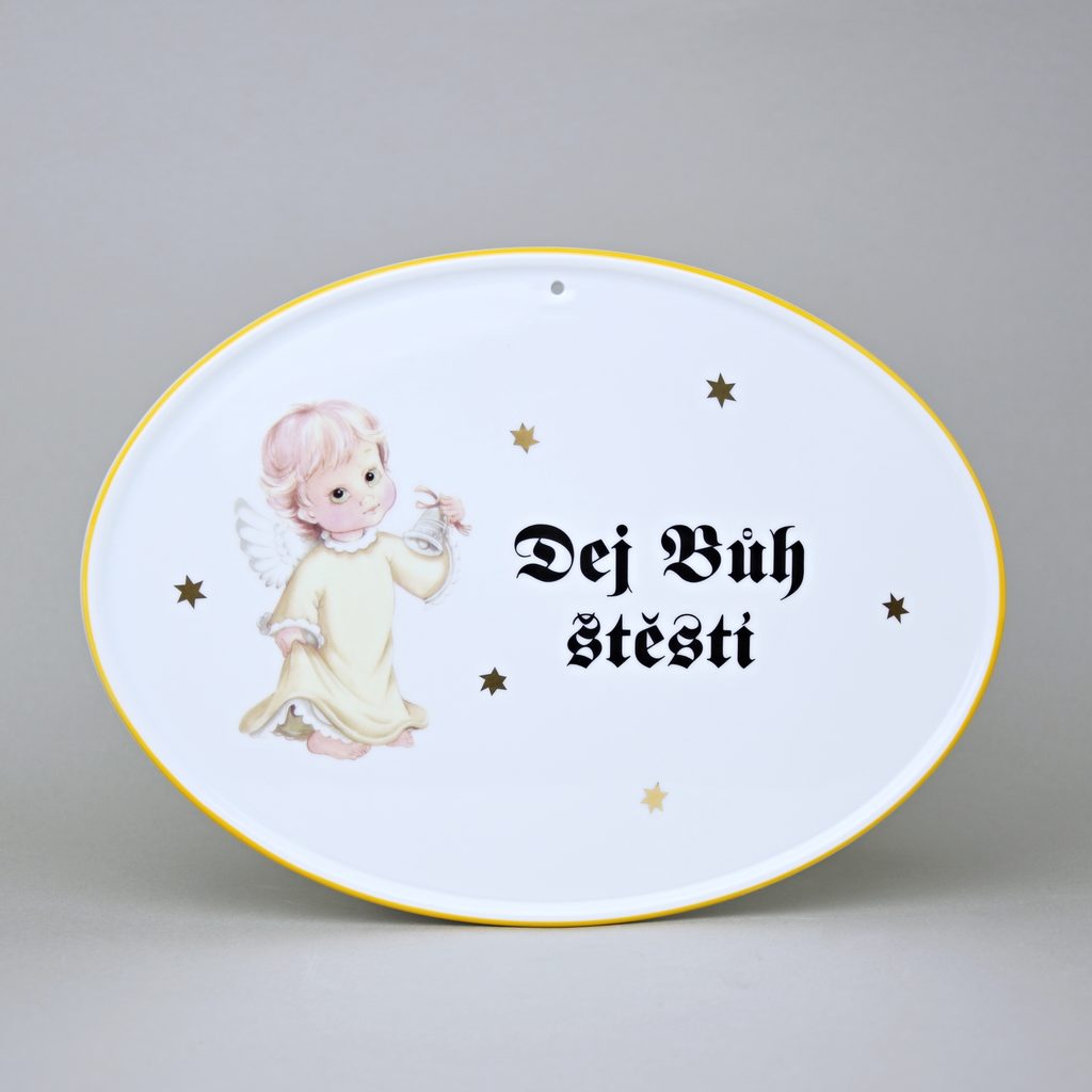 Boží požehnání (cedulka na zeď) 24,5 x 18 cm, Andílek žlutý, Český porcelán a.s.