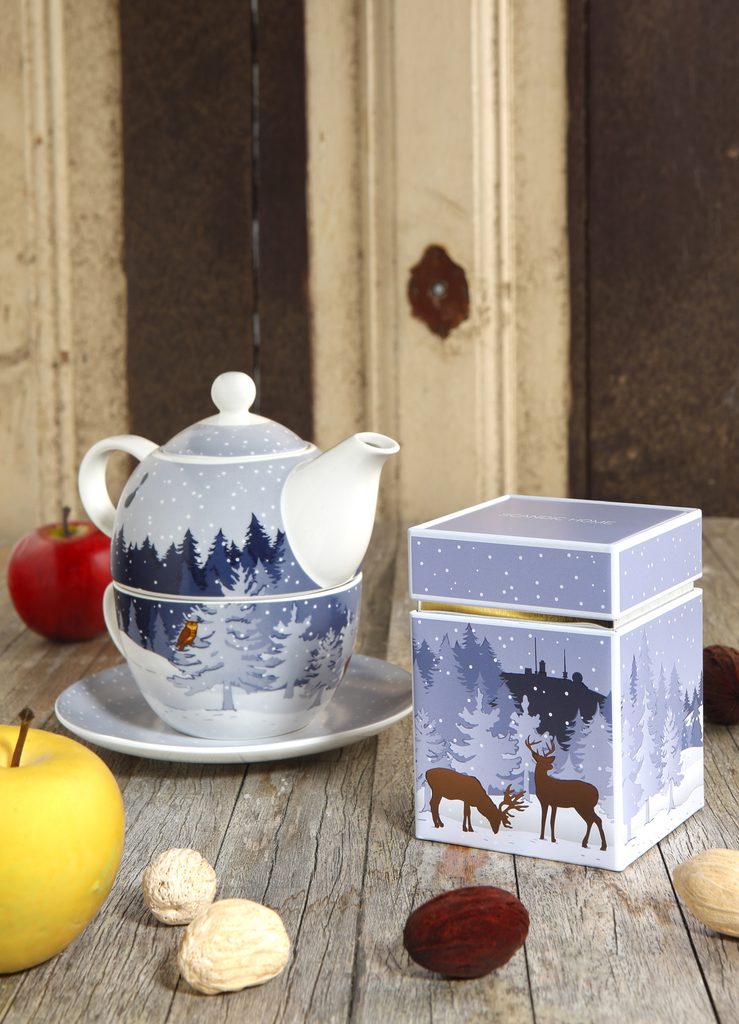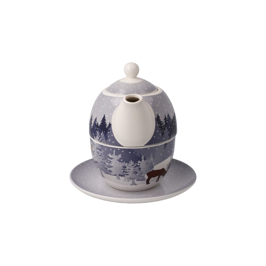 Čajová sada pro jednoho, 15,5 / 15,5 / 15,5 cm, severská zima, nový kostní porcelán, Goebel