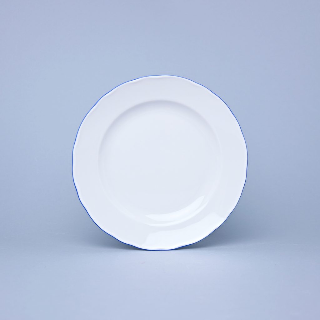 Talíř dezertní 19 cm, bílý porcelán s modrou linkou, Český porcelán a.s.