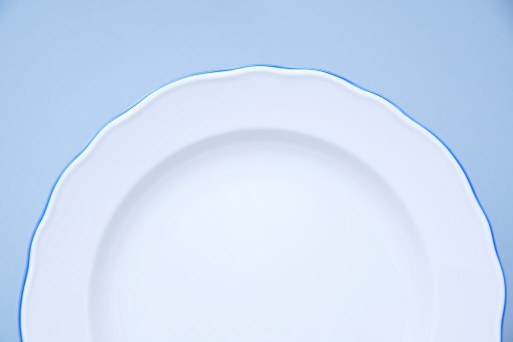 Talíře Bílý porcelán s modrou/červenou linkou