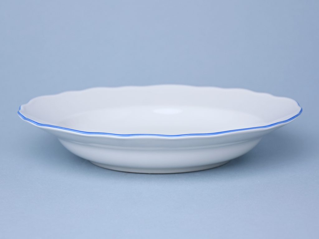 Talíř hluboký 24 cm, bílý porcelán s modrou linkou, Český porcelán a.s.