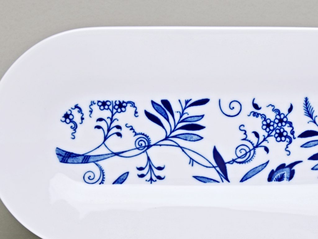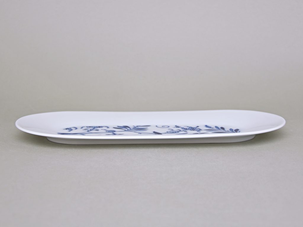 Krásný podnos - malý - se zjednodušeným cibulákovým dekorem v podobě jeho fragmentů. Dekorováno originální cobaltově modrou barvou pod glazuru. Nadčasový čistý design od známého architekta Jiřího Pelcla. Tato kolekce Bohemia Cobalt je krásná "designovka" s jemným odkazem na dlouholetou tradici, vhodná do každé moderní domácnosti.