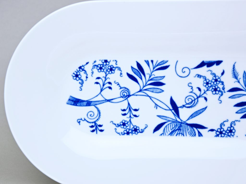 Krásný podnos - velký - se zjednodušeným cibulákovým dekorem v podobě jeho fragmentů. Dekorováno originální cobaltově modrou barvou pod glazuru. Nadčasový čistý design od známého architekta Jiřího Pelcla. Tato kolekce Bohemia Cobalt je krásná "designovka" s jemným odkazem na dlouholetou tradici, vhodná do každé moderní domácnosti.