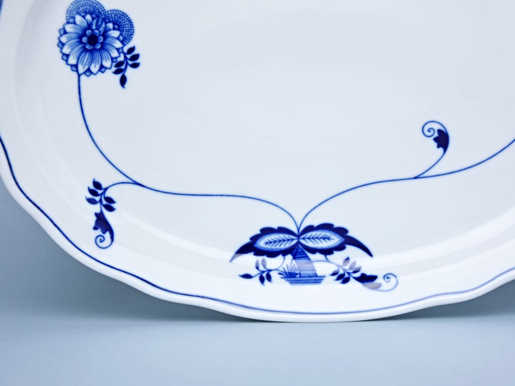 Talíře Podnosy, ovály, mísy ploché, koláčové a dortové talíře ECO modré, zjednodušený cibulák
