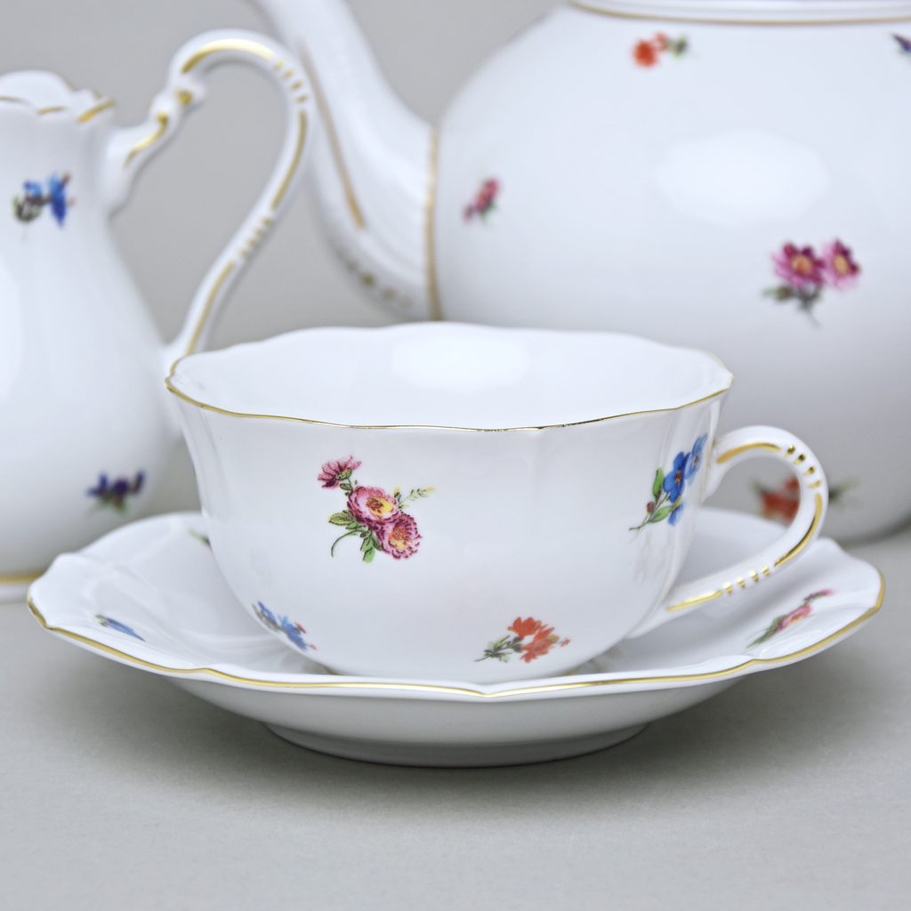 6x šálek a podšálek 200 ml, konev čajová 1,2 l, cukřenka 200 ml a mlékovka 250 ml