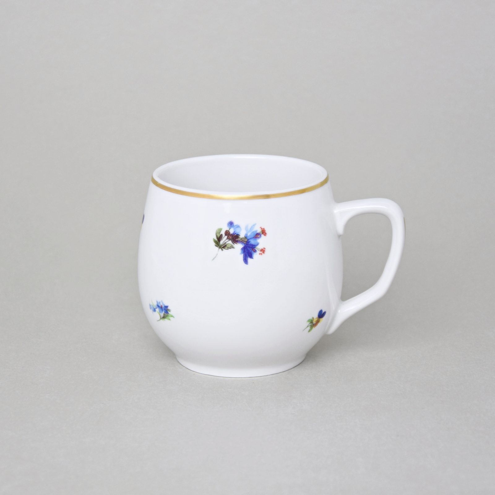 Oblíbený hrnek Baňák o objemu 300 ml s tradičním květinovým dekorem házenka se zlatou linkou. Český porcelán a.s.