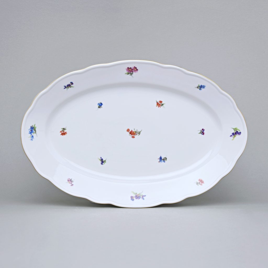 Oválná mísa / podnos na servírování. Délka 35 cm. V dekoru tradiční Rakouská házenka se zlatou linkou. Český porcelán a.s.