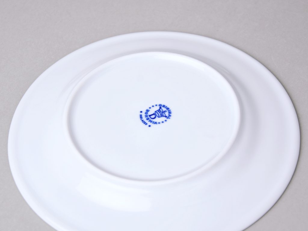 snídaňový, Velmi bytelné porcelánové talíře jednoduchého tvaru s KVALITNÍM dekorem vtavené (navěky) modré květiny, Český porcelán a.s., Dubí. MYČKA A MIKROVLNKA OK
