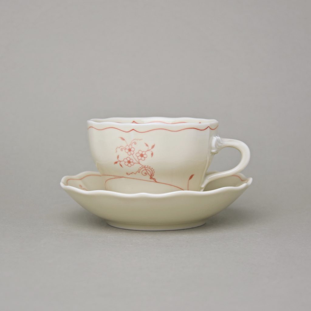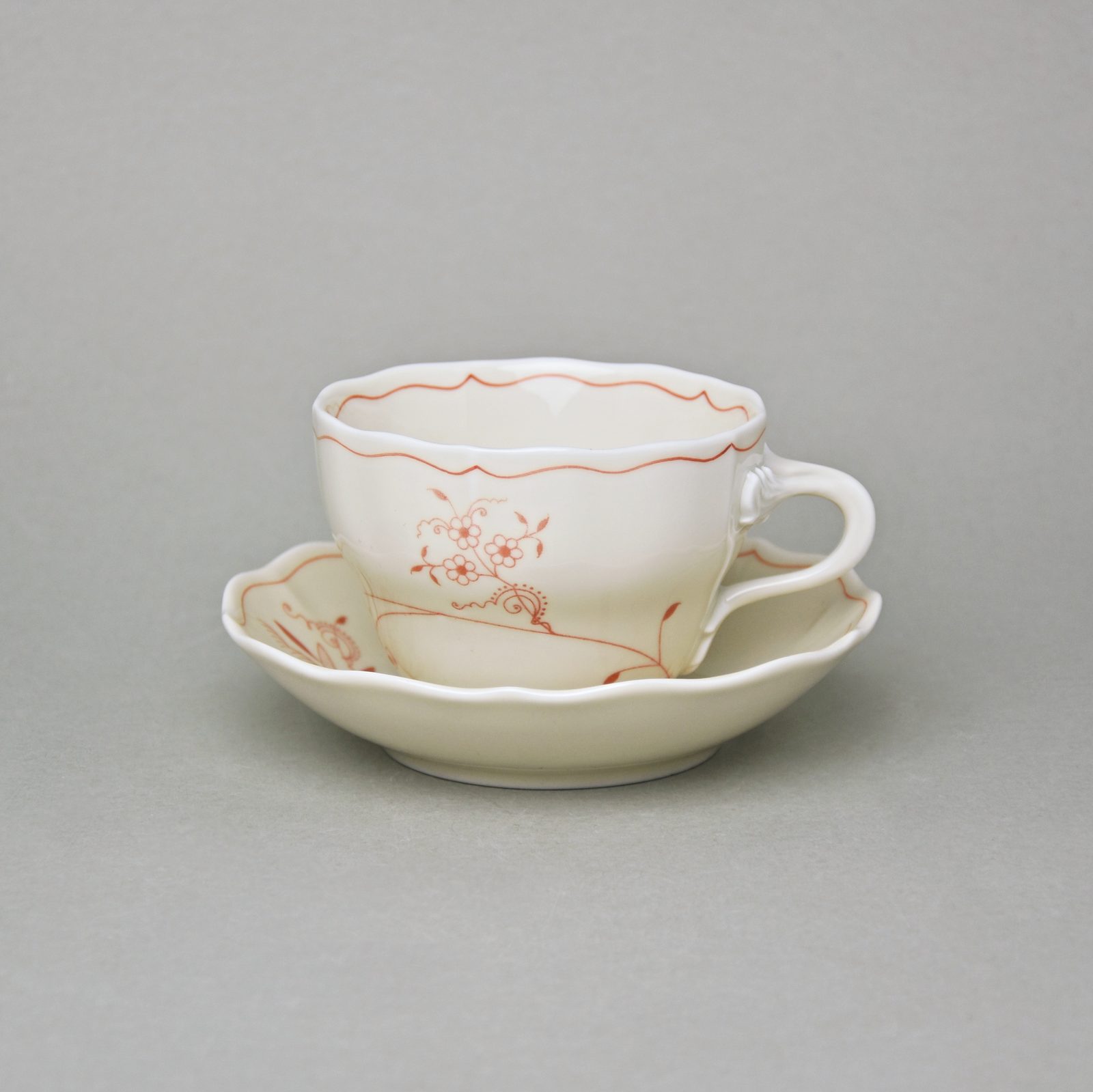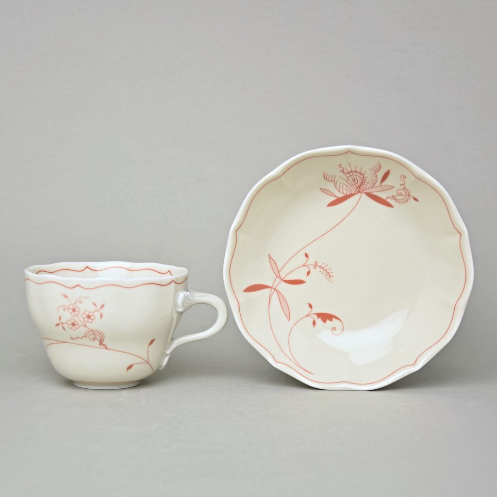 Šálek a podšálek B + B, 210 ml / 14 cm na kávu, cibulák ECO červený na ivory, Český porcelán a.s.