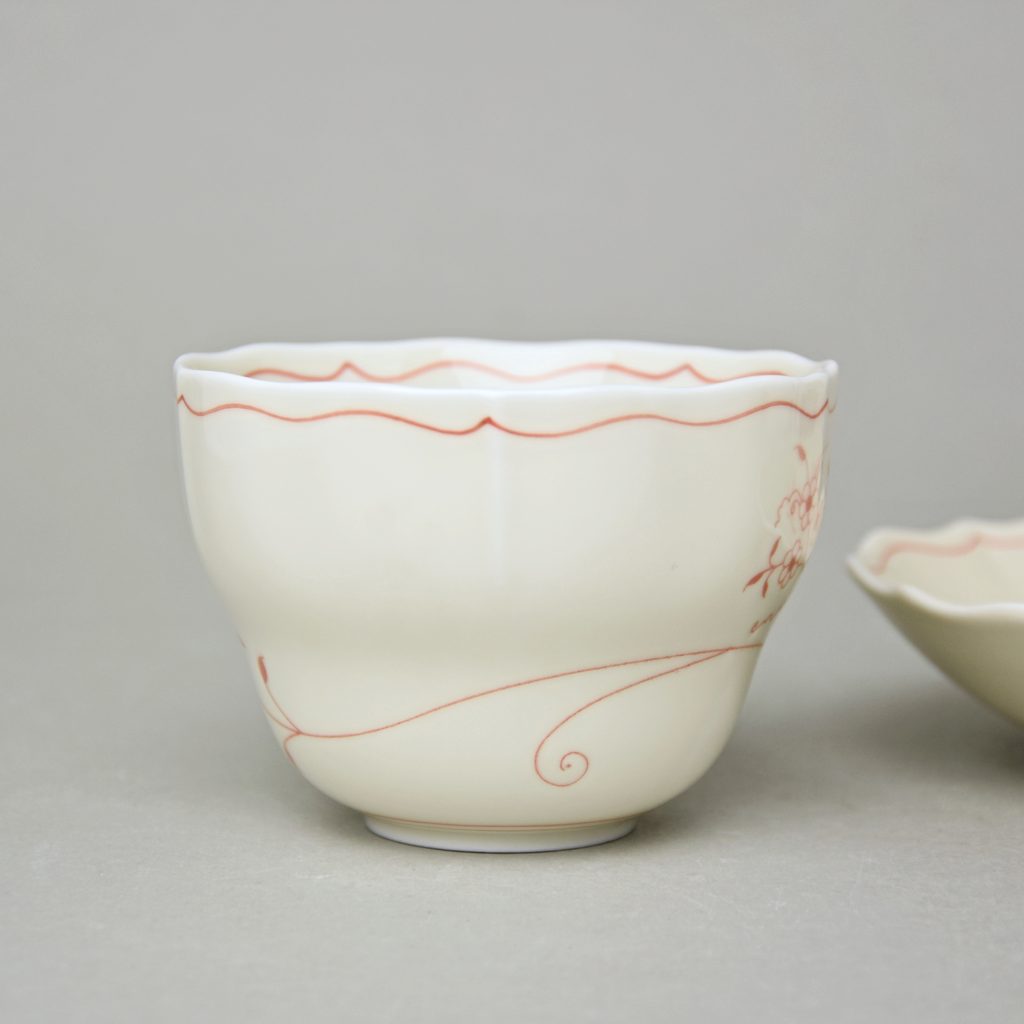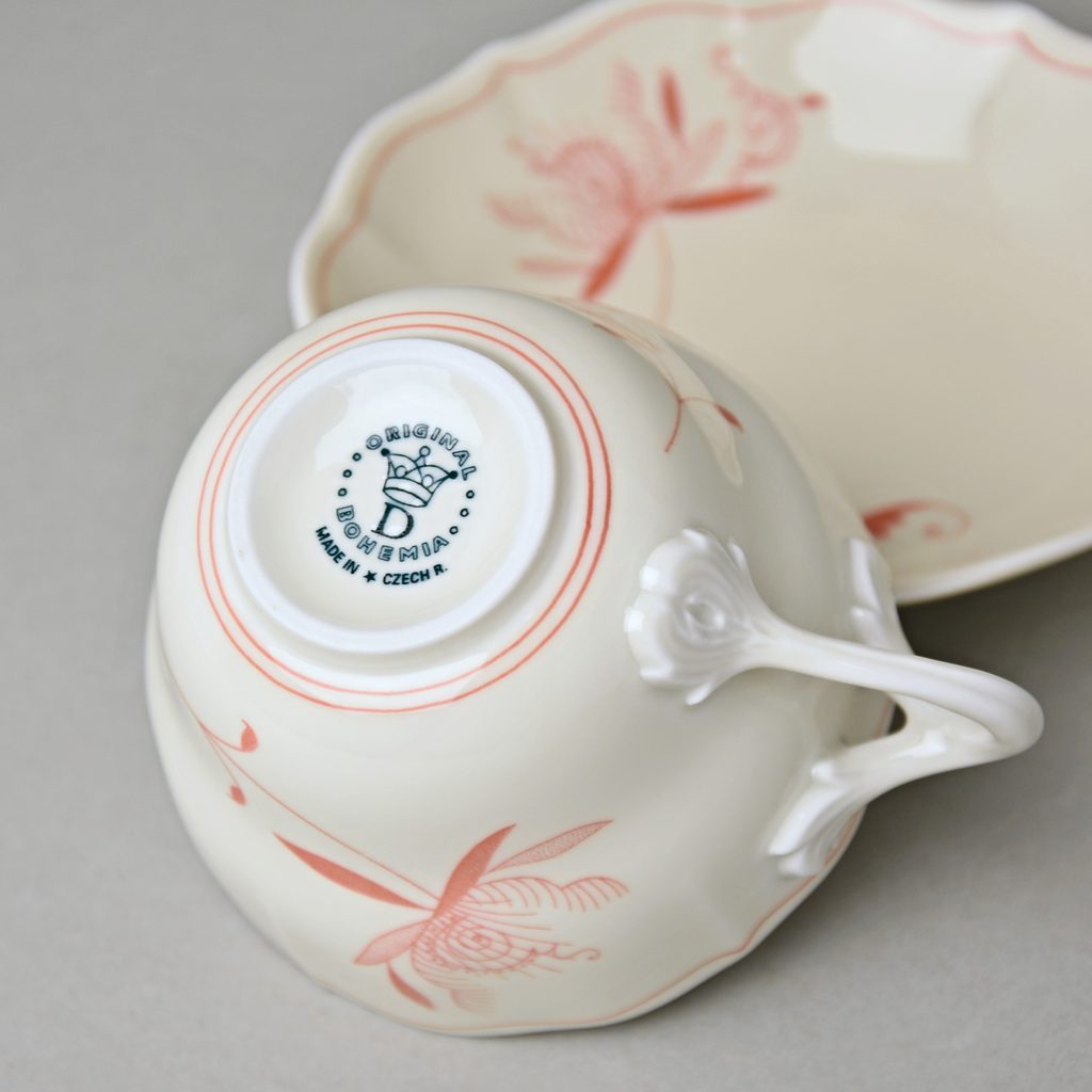 Šálky a podšálky ECO červené (zjednodušený cibulák) na slonové kosti