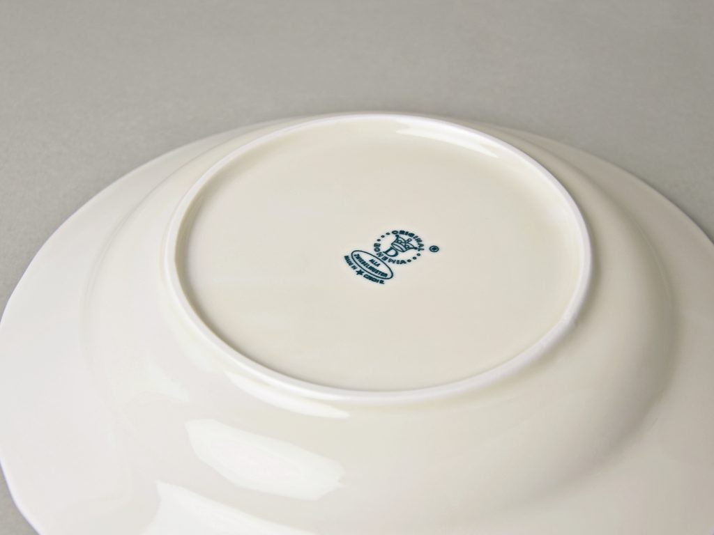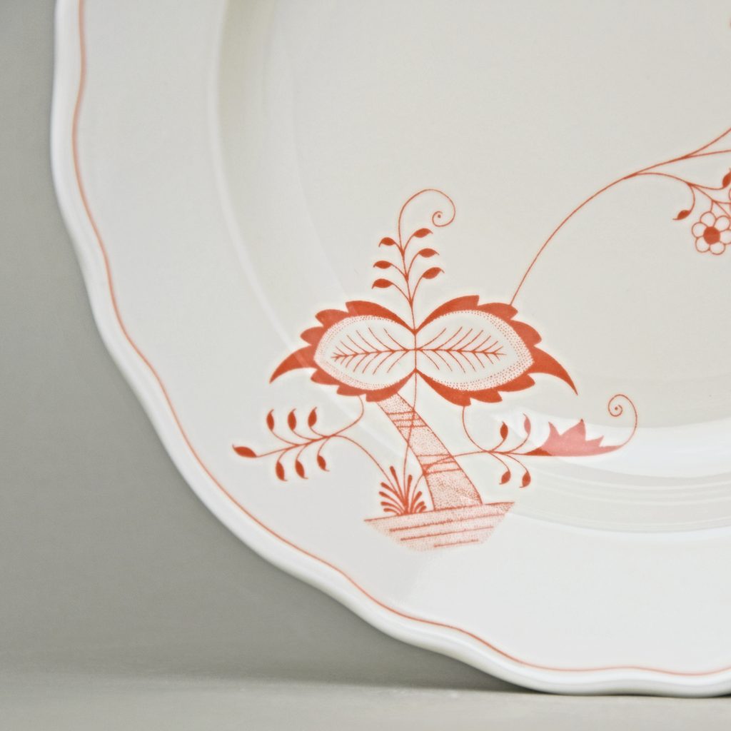 Talíř hluboký 24 cm. Červený dekor zjednodušeného cibuláku "ECO" na porcelánu v barvě slonové kosti. Vyrábí Český porcelán a.s. v Dubí.