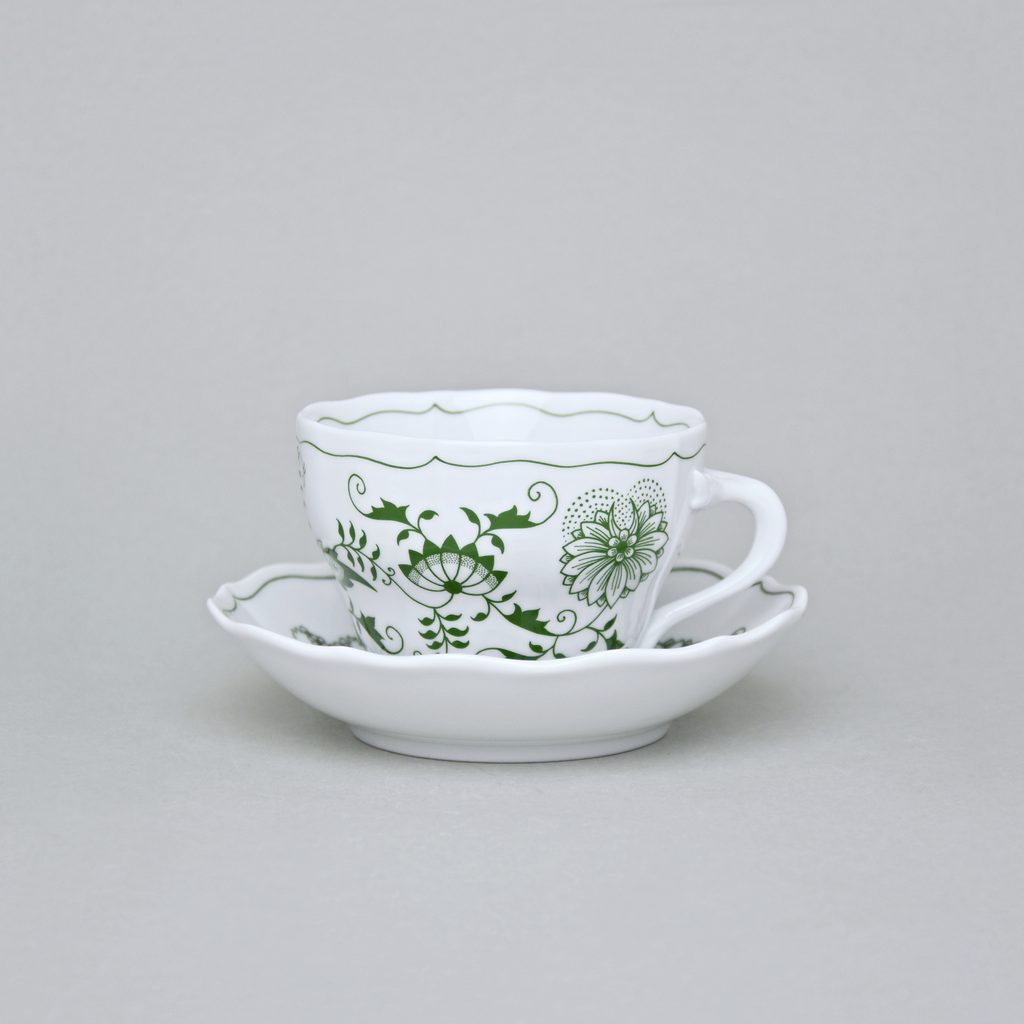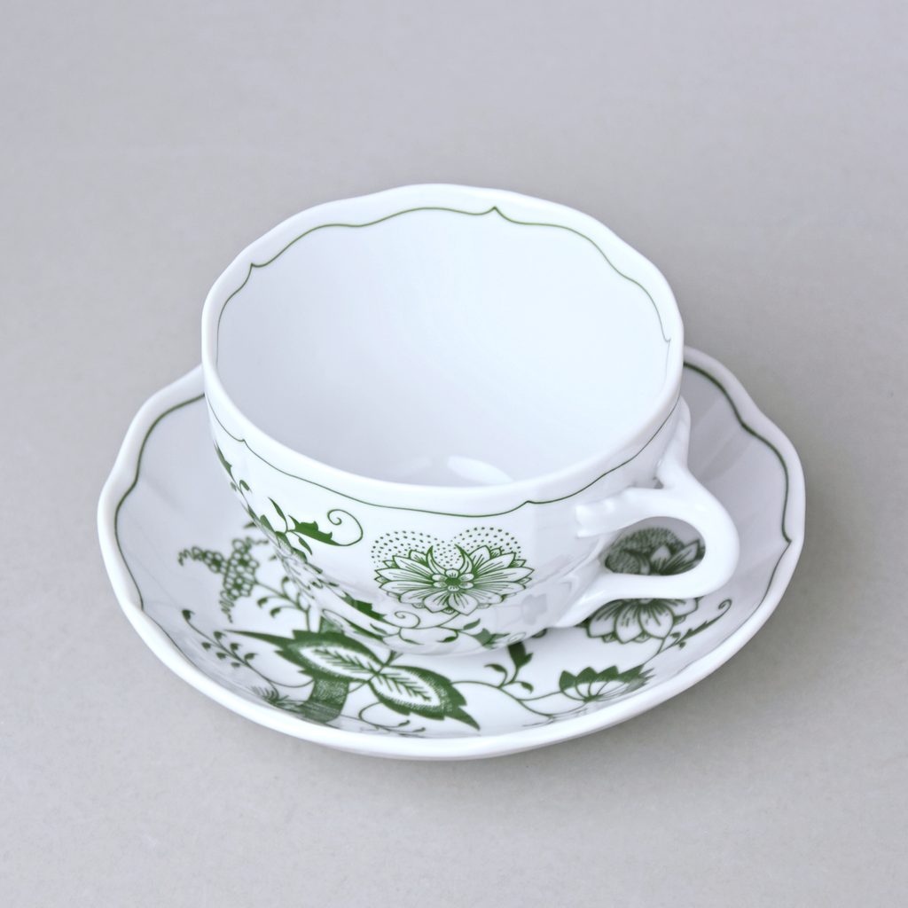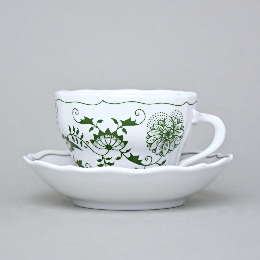 Krásný střední šálek B o objemu 210 ml s podšálkem B 14 cm na kávu. Dekor zelený cibulák, Český porcelán a.s.