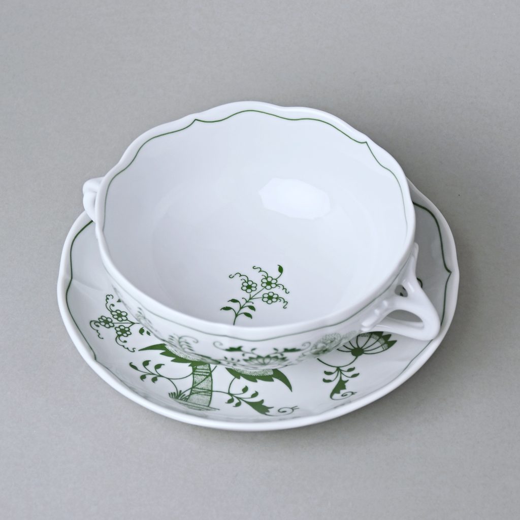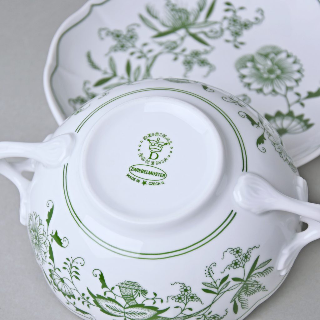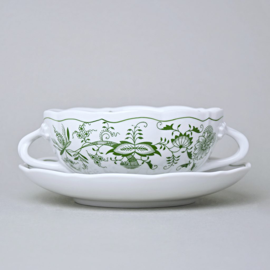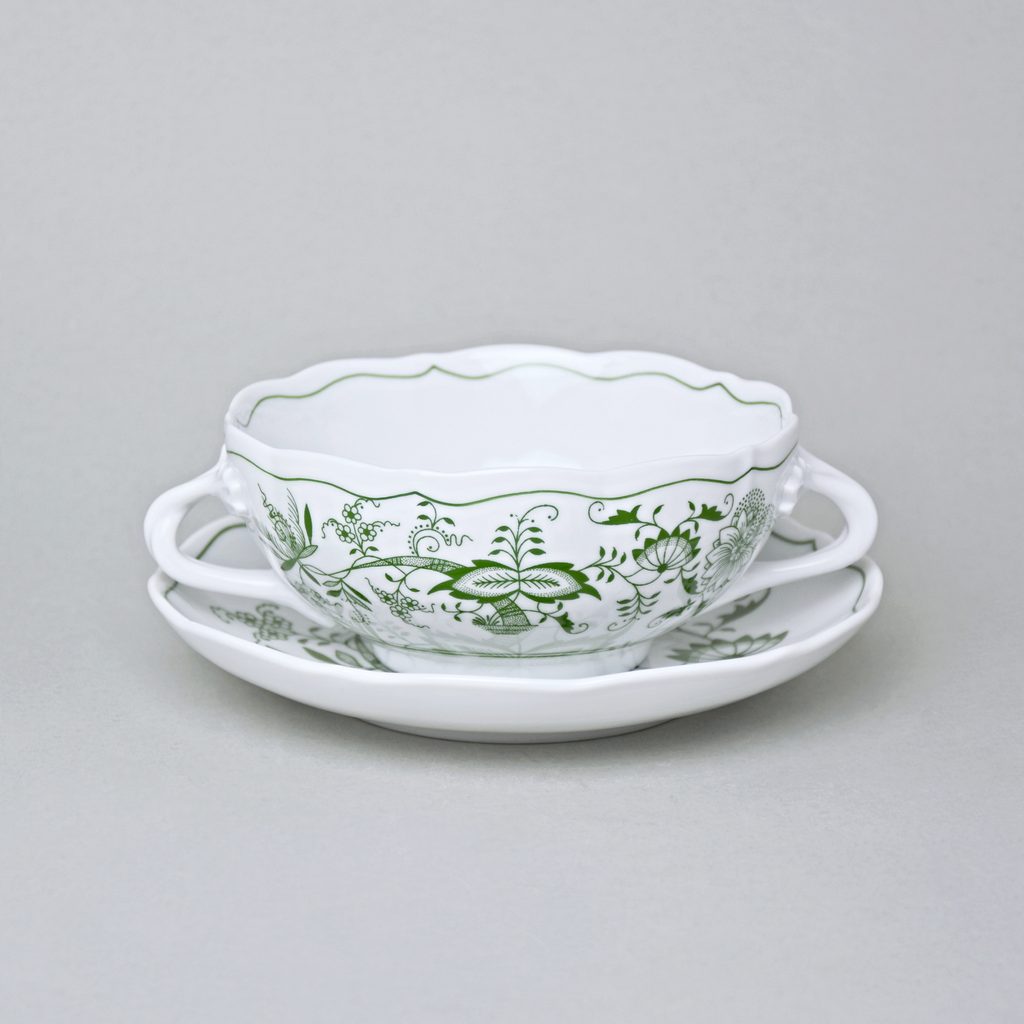 Šálek a podšálek bujón (na polévku) s oušky 250 ml / 17,5 cm, zelený cibulák, Český porcelán a.s.