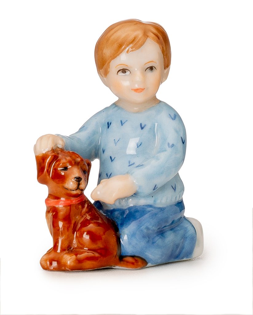 Chlapeček s pejskem 4 x 4,5 cm, porcelánové figurky Royal Copenhagen