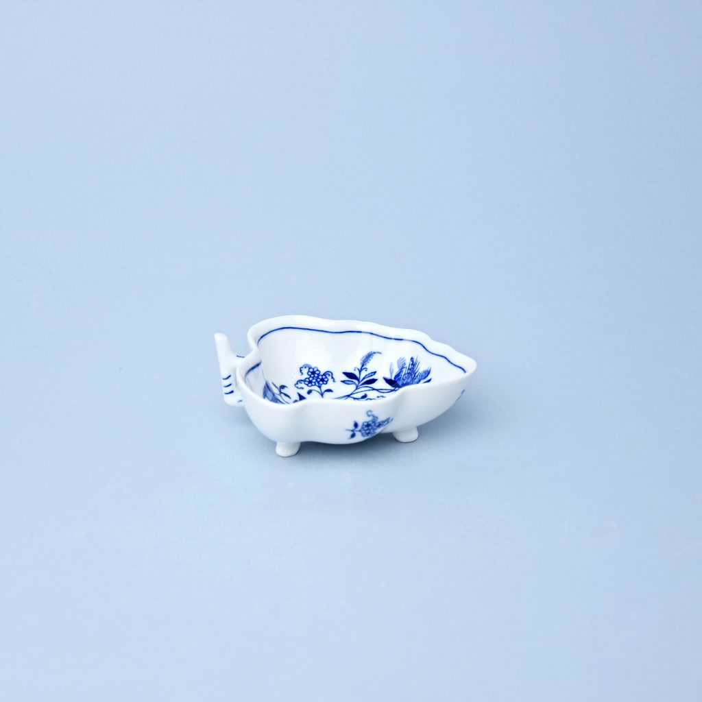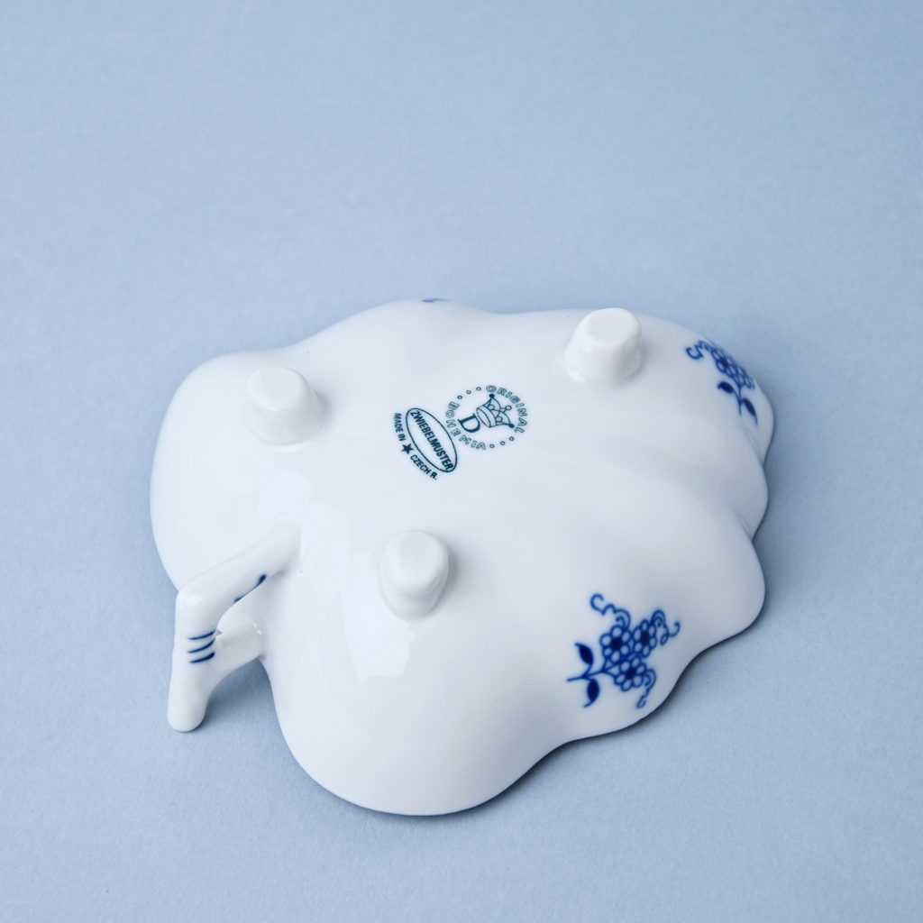 Cukřenka ve tvaru listu na nožkách. Originální cibulák z Dubí, Český porcelán a.s.