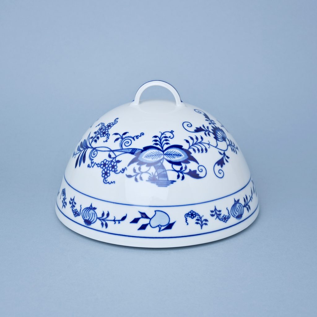 Porcelánový poklop na potraviny, Originální cibulák z Dubí, Český porcelán a.s. Praktická záležitost - pokud Vám zbyde kousek buchty, dortu nebo někomu připravíte snídani na později... pod poklopem neokorá.
