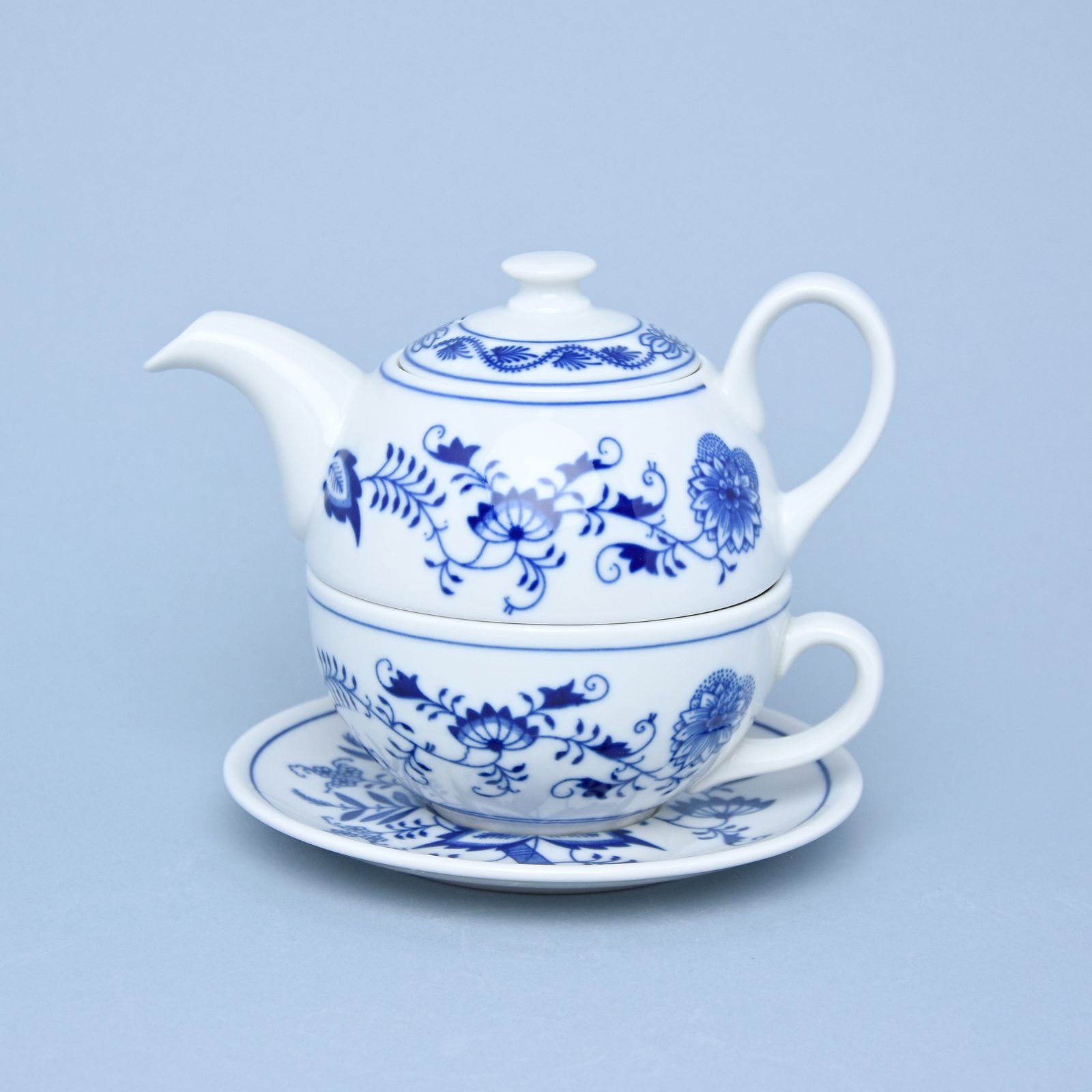 Krásná čajová souprava pro 1 osobu z kvalitního českého porcelánu. V dekoru originální cibulový vzor.