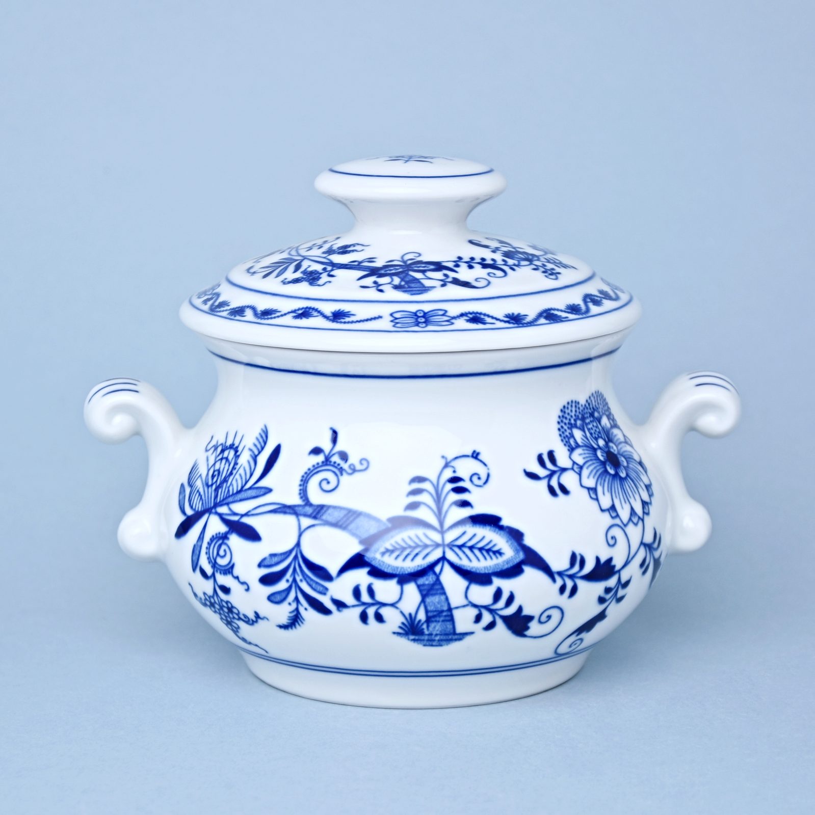 Pěkný hrnek / kulatá zapékací mísa s uchy a víkem. Objem 700 ml. Originální cibulák z Dubí, Český porcelán a.s.