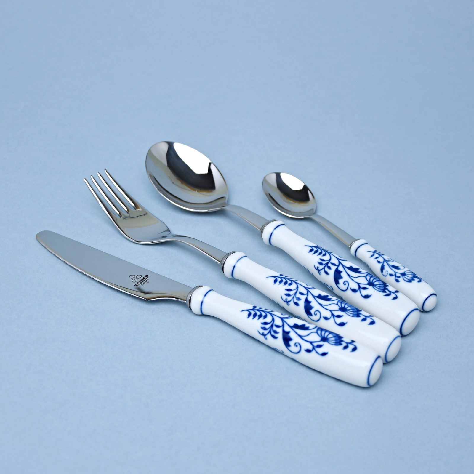 Krásná sada příborů s porcelánovou rukojetí se vzorem originálního cibuláku od českého výrobce kvalitních příborů z prvotřídní nerezové oceli TONER. Porcelánová rukojeť je vyrobena tradičně v Dubí - Český porcelán a.s.