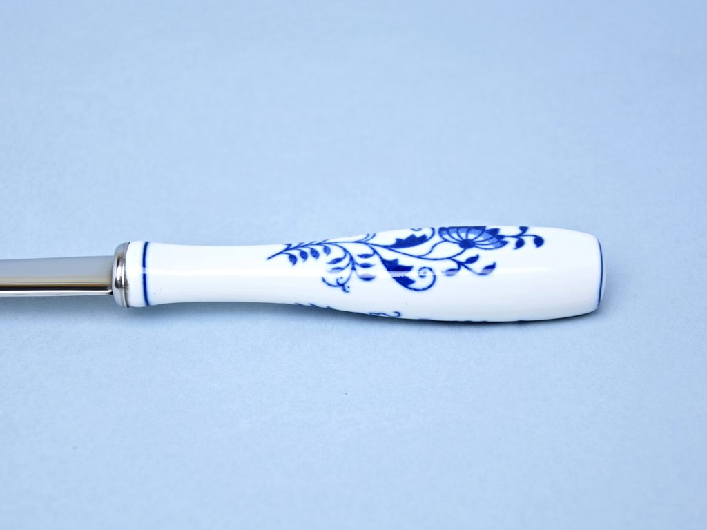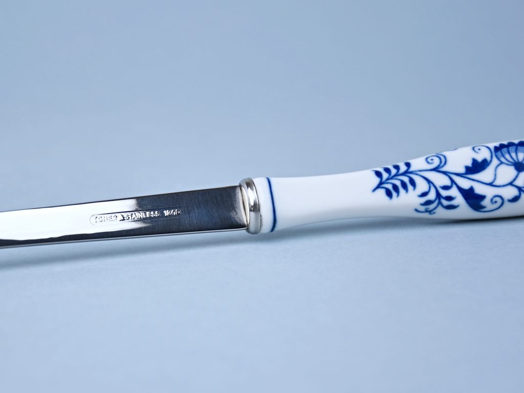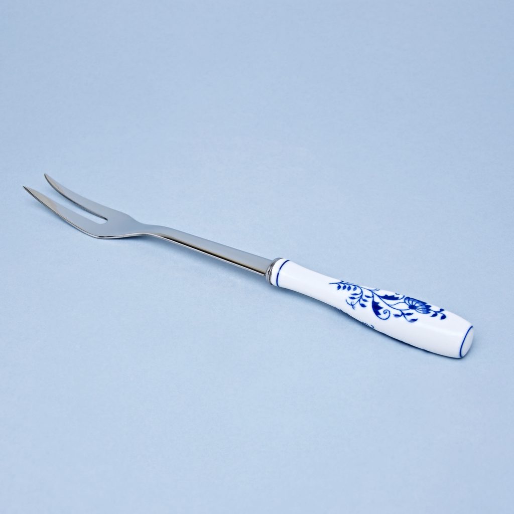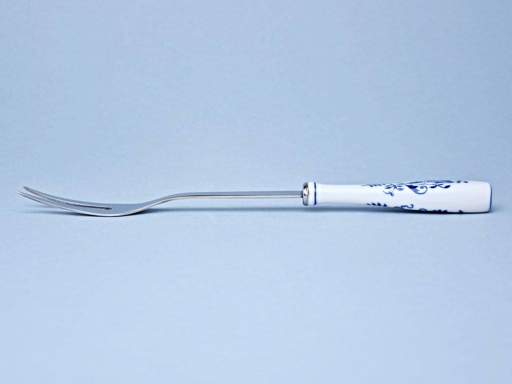 Překládací vidlička o délce 27 cm od českého výrobce kvalitních příborů z prvotřídní nerezové oceli TONER. Rukojeť porcelánová s dekorem originálního cibulového vzoru - výroba tradičně v Dubí - Český porcelán a.s.
