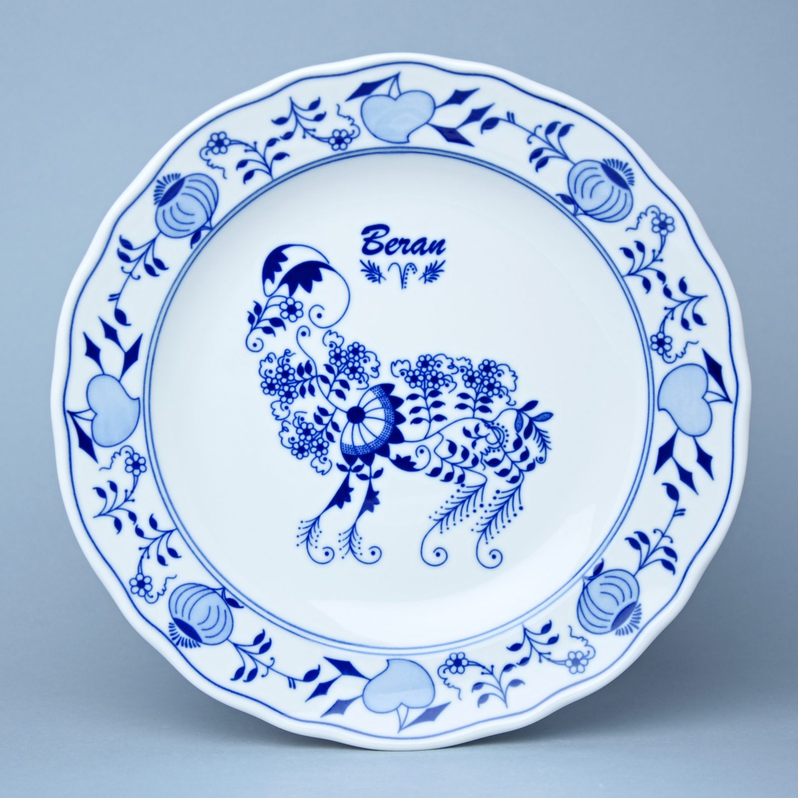 Talíř mělký 24 cm ve znamení zvěrokruhu: Beran (21. 3. - 20. 4.). Zezadu talíře dvě dírky - možno i zavěsit na zeď. Originální Cibulák z Dubí, Český porcelán a.s.
