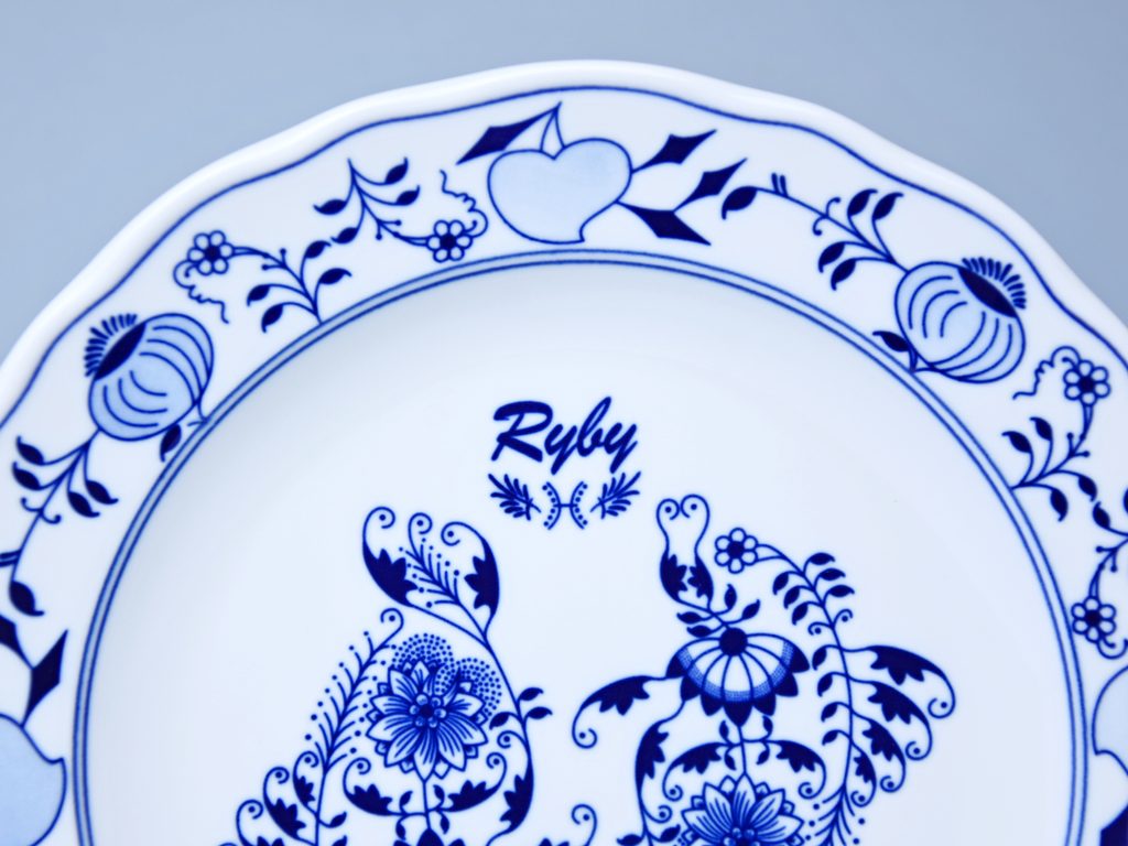 Talíř mělký 24 cm, Ryby, (i na zeď), Cibulák, originální z Dubí