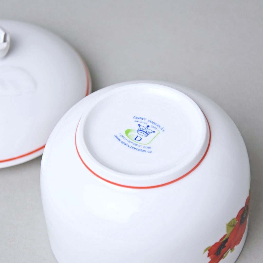 Cukřenka bez oušek s víčkem bez výřezu 0,20 l, máky, Český porcleán a.s.