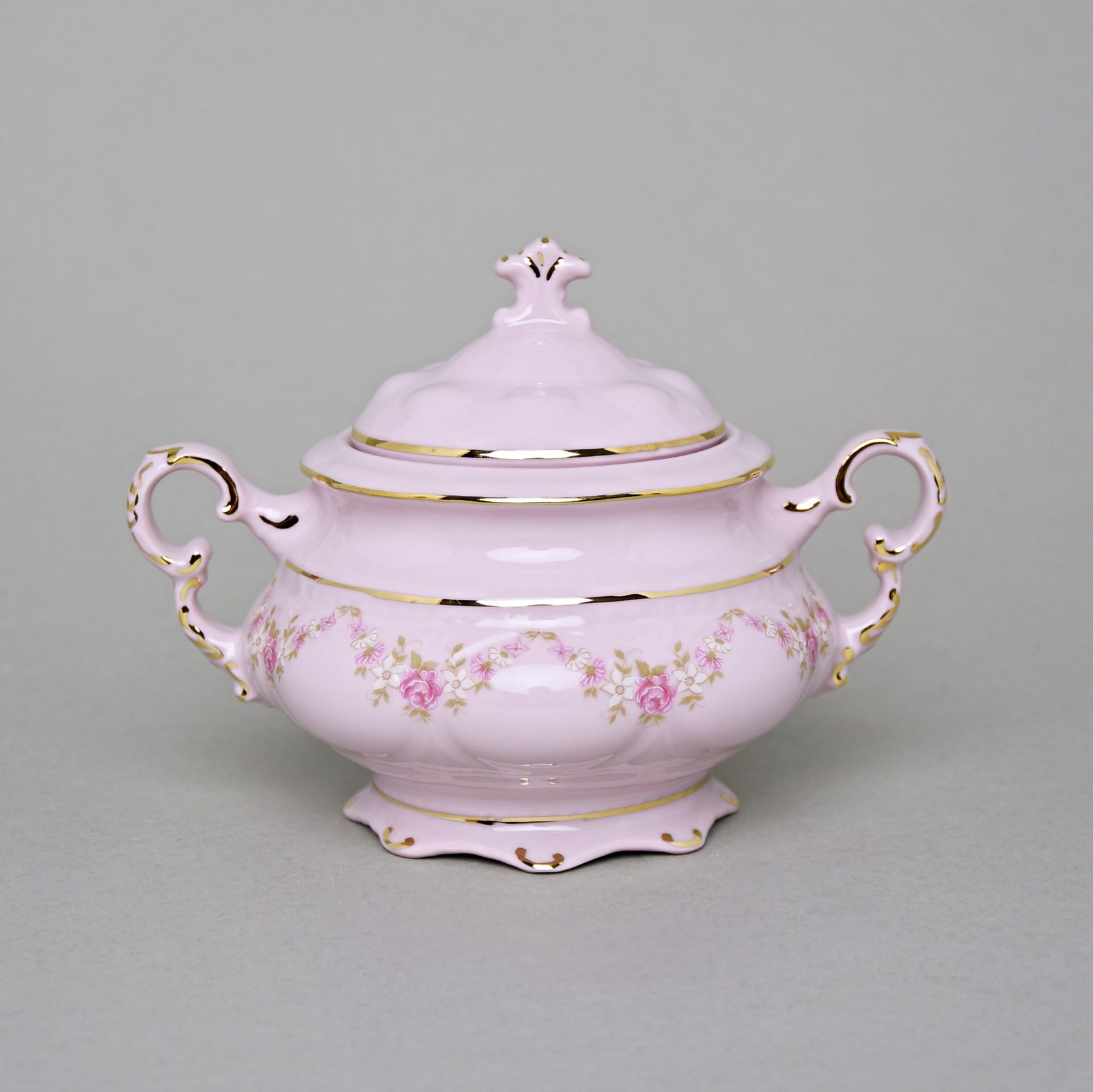 Cukřenka velká 330 ml, Sonáta, Dekor 158, Leander, růžový porcelán