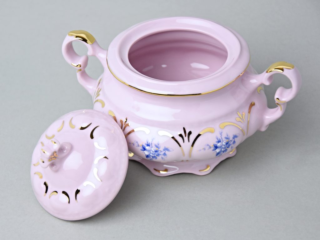 Cukřenka velká 330 ml, Sonáta, Dekor 9 pomněnky, Leander, růžový porcelán