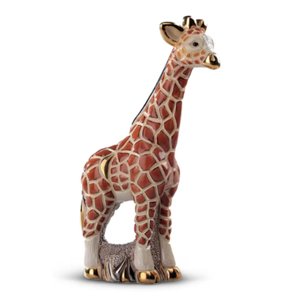 Keramická, ručně vyřezávaná a malovaná figurka žirafy v béžové barvě od výrobce De Rosa. Každá tvorba sbírek De Rosa Collections je výsledkem jedinečného ručního procesu nejvyšší technické a umělecké kvality. Každá figurka je ručně vyřezávaná a malovaná v Uruguayi. Figurky jsou zvýrazněny platinou, zlatem a zářivými emailovými glazurami.