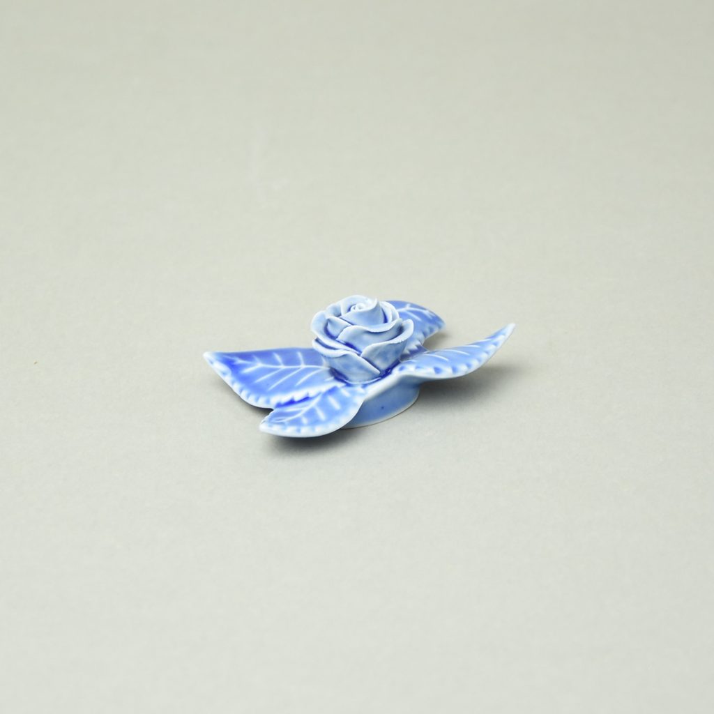 Dekorativní porcelánová růžička - celomodrá - na ozdobení jídelní tabule. Např. pro svatební tabule a další slavnostní hostiny.