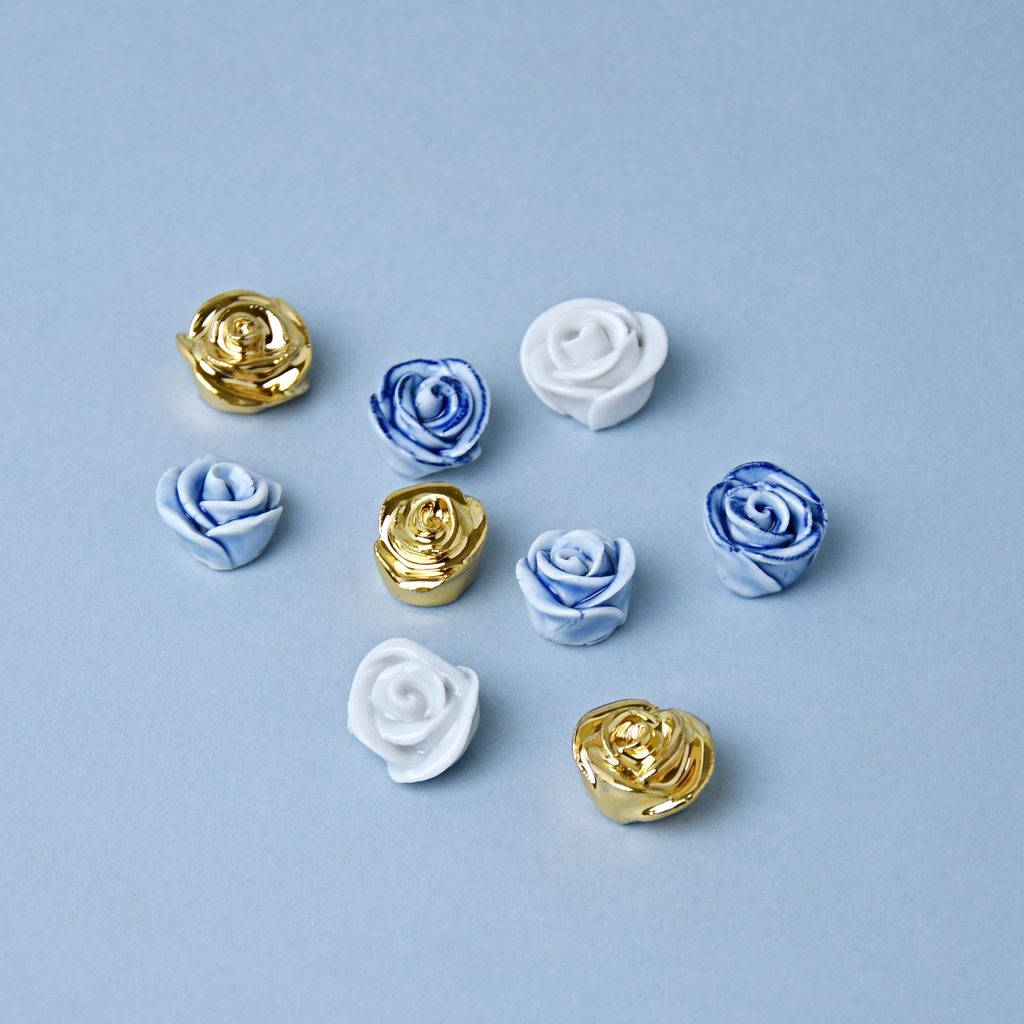 Dekorativní porcelánová růžička na ozdobení jídelní tabule. Např. pro svatební tabule a další slavnostní hostiny.