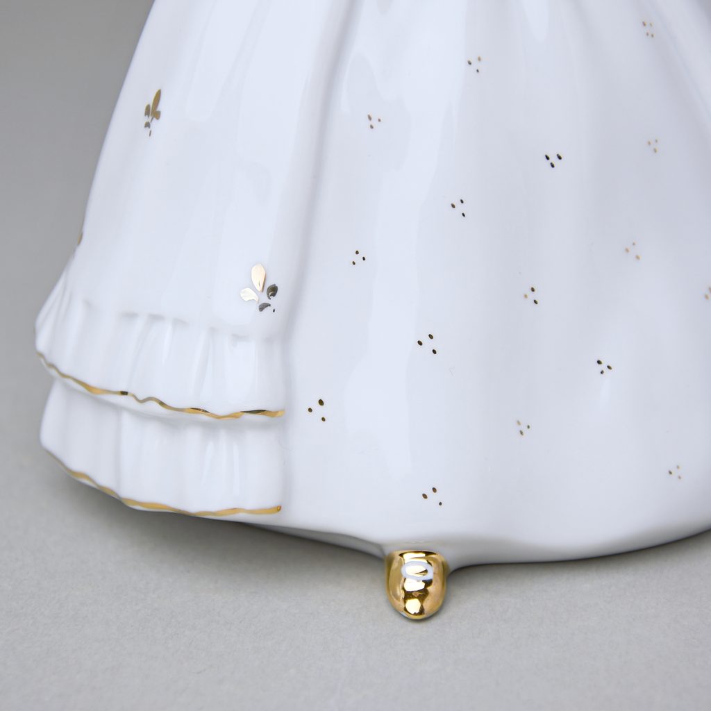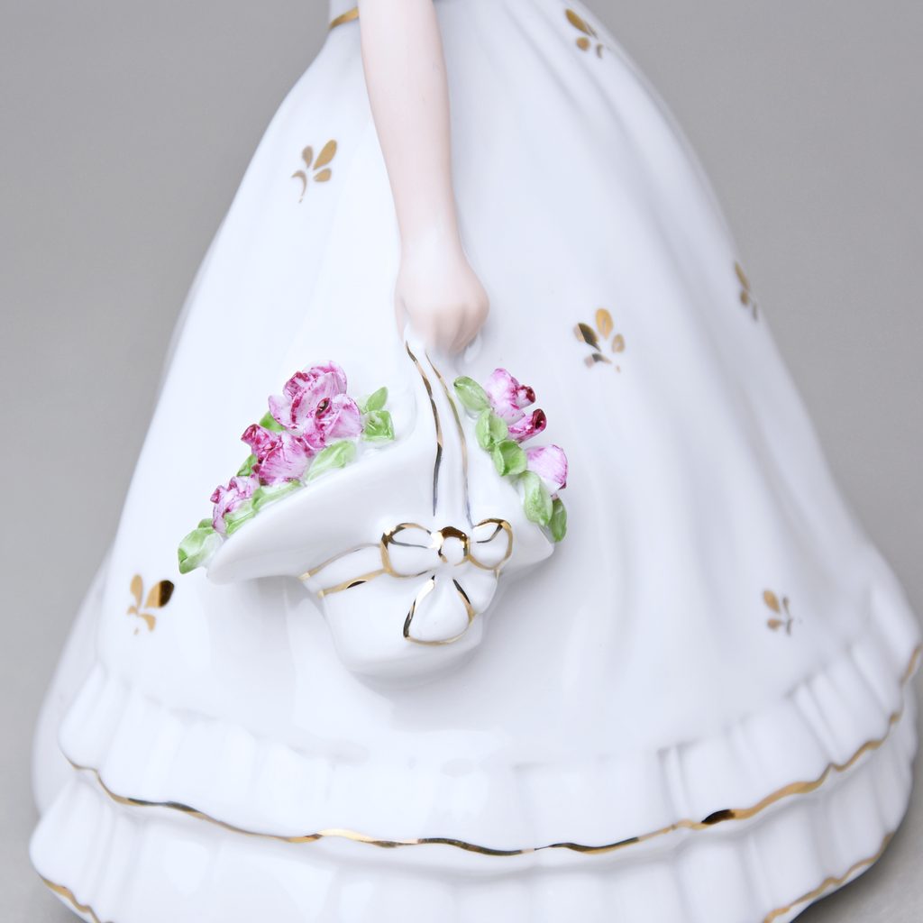 Dívka s kloboukem a růžemi 12 x 14 x 19 cm, Bílá + zlato + saxe, Porcelánové figurky Duchcov