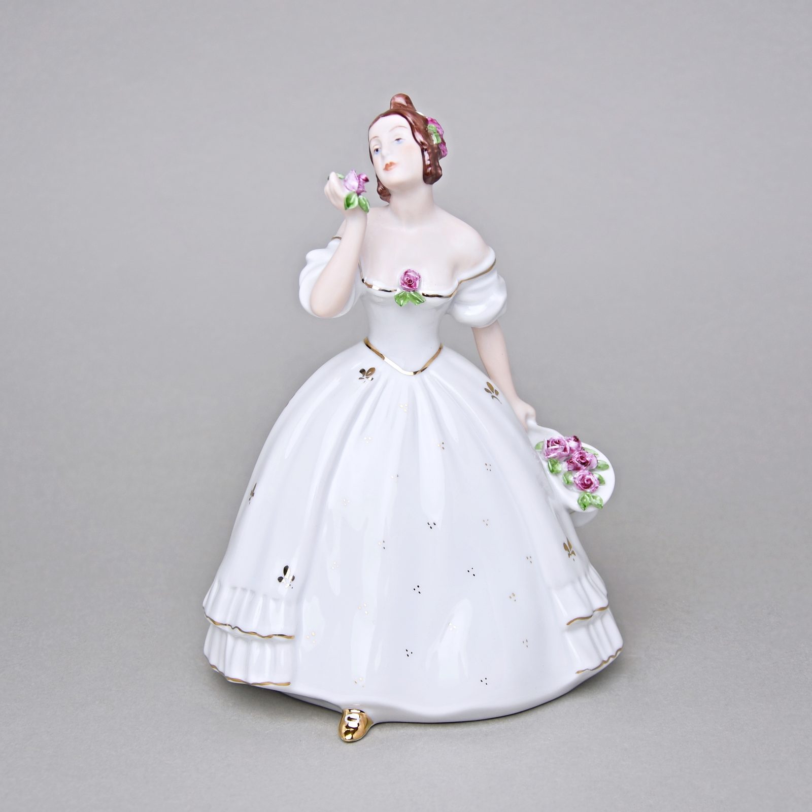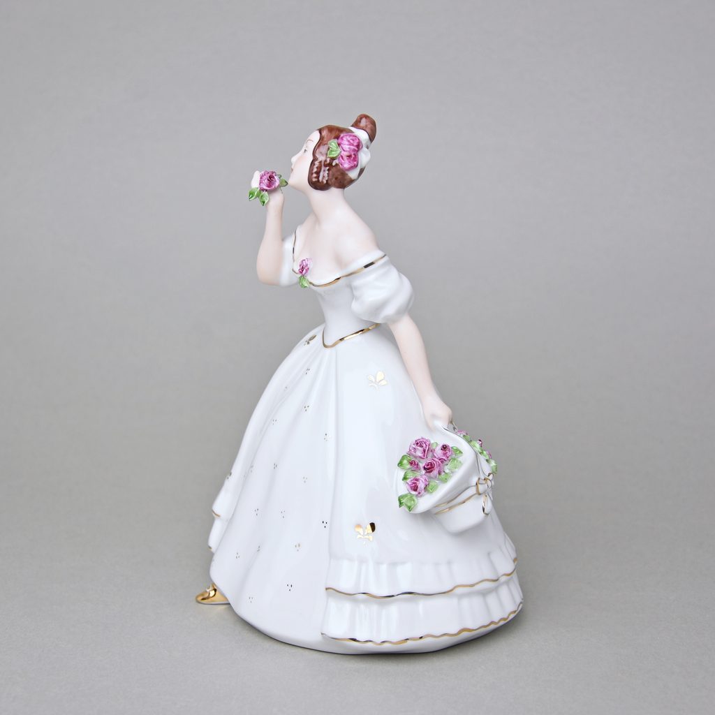 Porcelánová figurka "Dáma s kloboukem a růžemi". Z tradiční české porcelánky Duchcov (Royal Dux Bohemia).