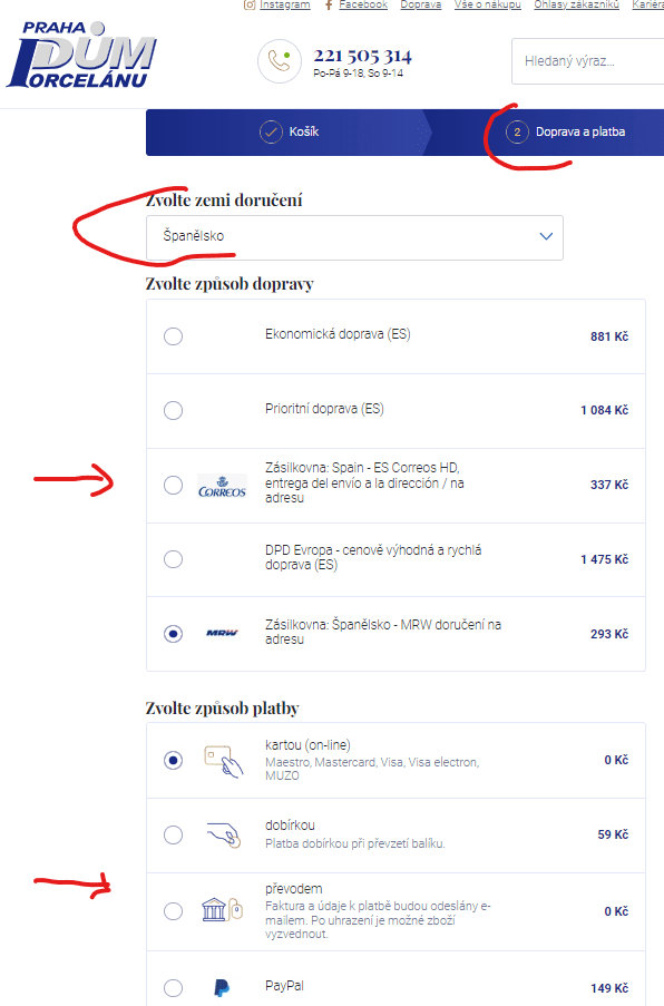 Cena dopravy do zahraničí závisí na váze zásilky, zemi doručení a způsobu platby. Do zahraničí zasíláme nejčastěji Českou poštou (tj. zboží je doručeno tamní poštou), předevím do zaoceánských zemí a zemí mimo EU. Pro dopravu do zemí EU doporučujeme vybrat DPD nebo Zásilkovnu. Chcete znát cenu dopravy? Jednoduše vložte zboží do košíku, vyberte zemi doručení a systém zobrazí všechny možnosti dopravy a platby.