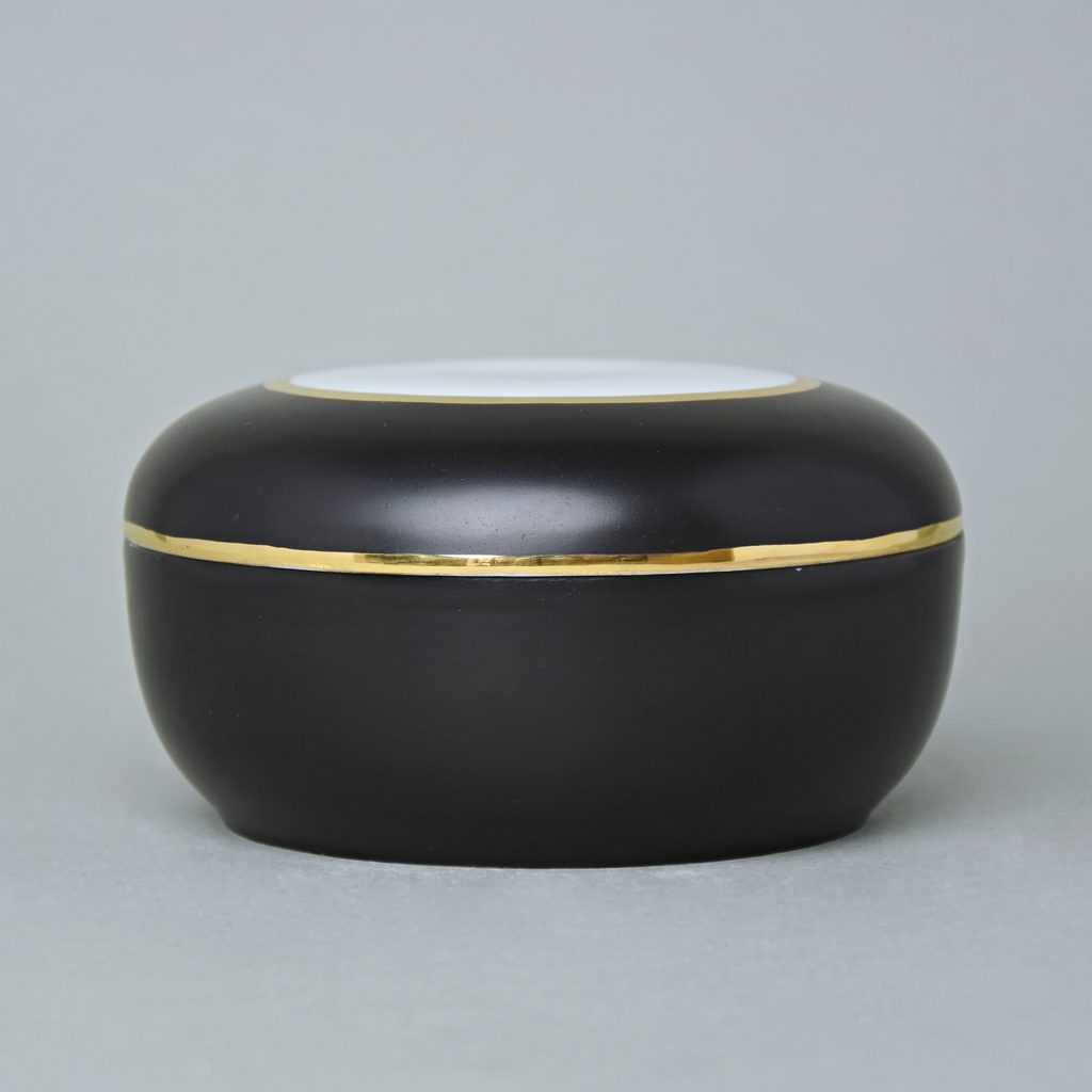 Dóza kulatá 13,7 x 7,5 cm, Černý fond + Zlato, Porcelán Duchcov