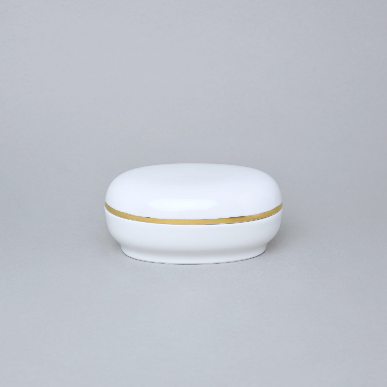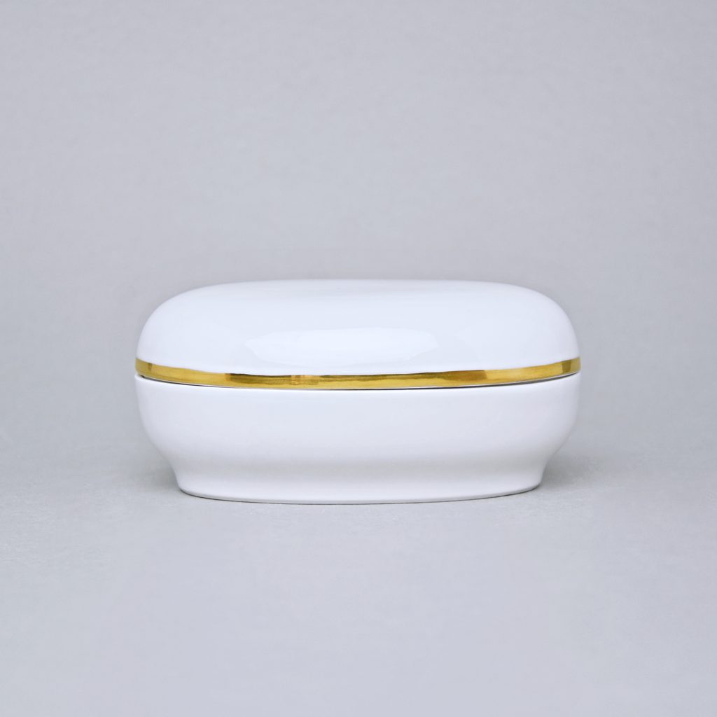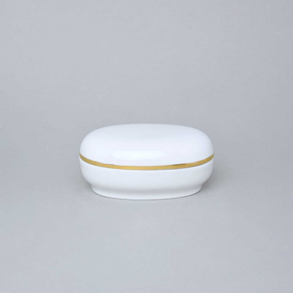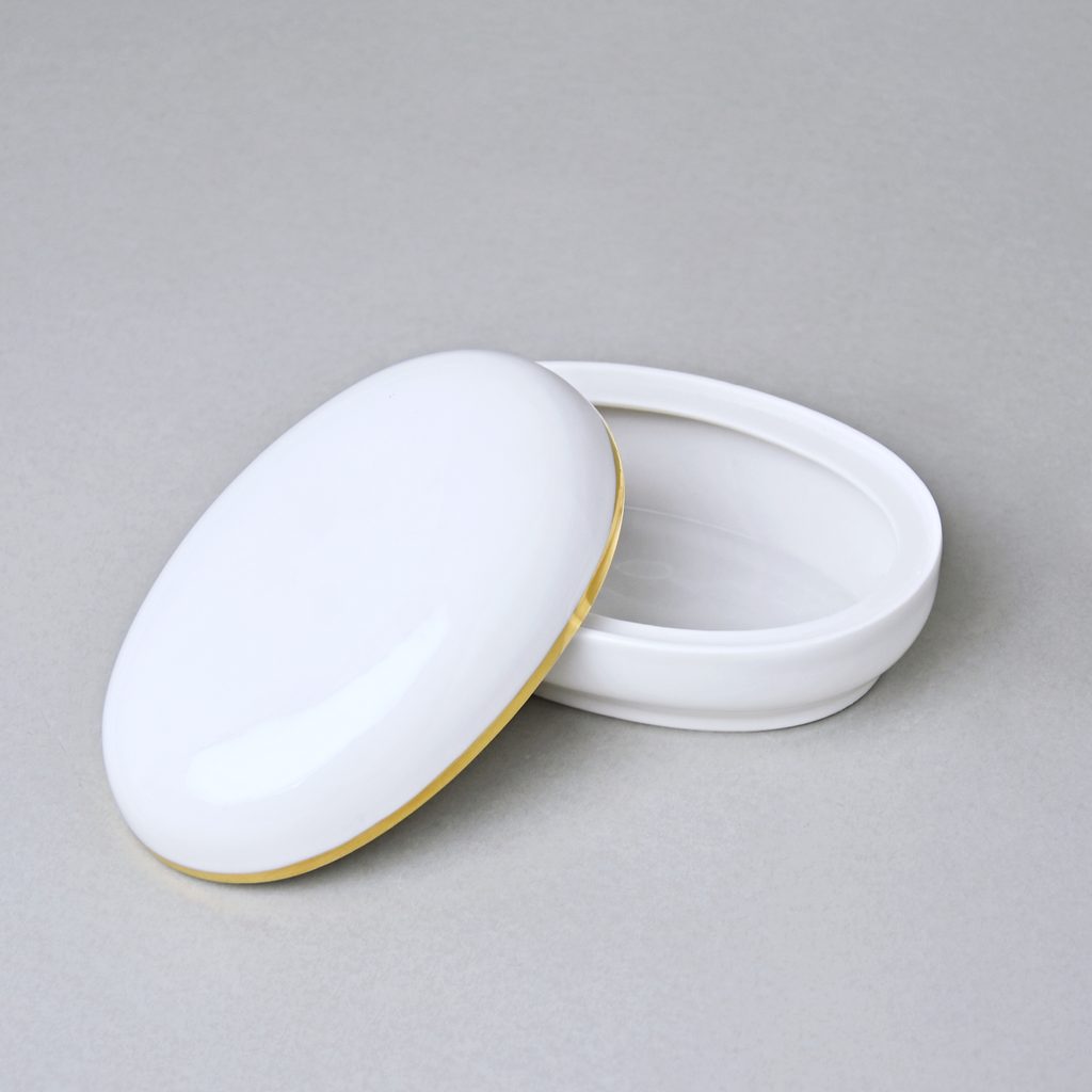 Dóza ovalná 12 x 8 cm, Bílá + Zlato, Porcelán Duchcov