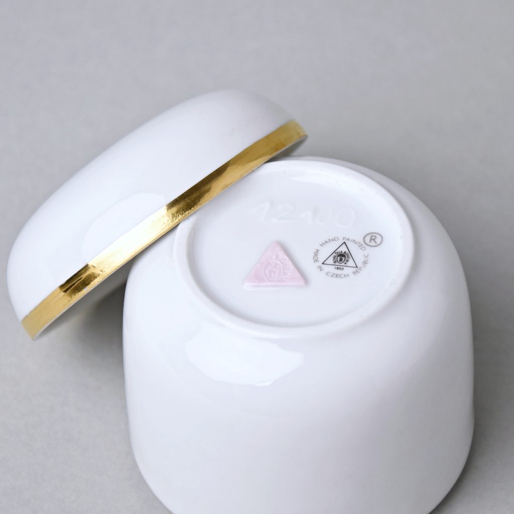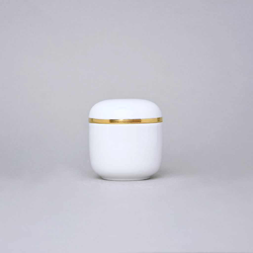 Dózička kulatá se zlatým páskem 7,5 x 7,2 cm, Bílá + Zlato, Porcelán Duchcov