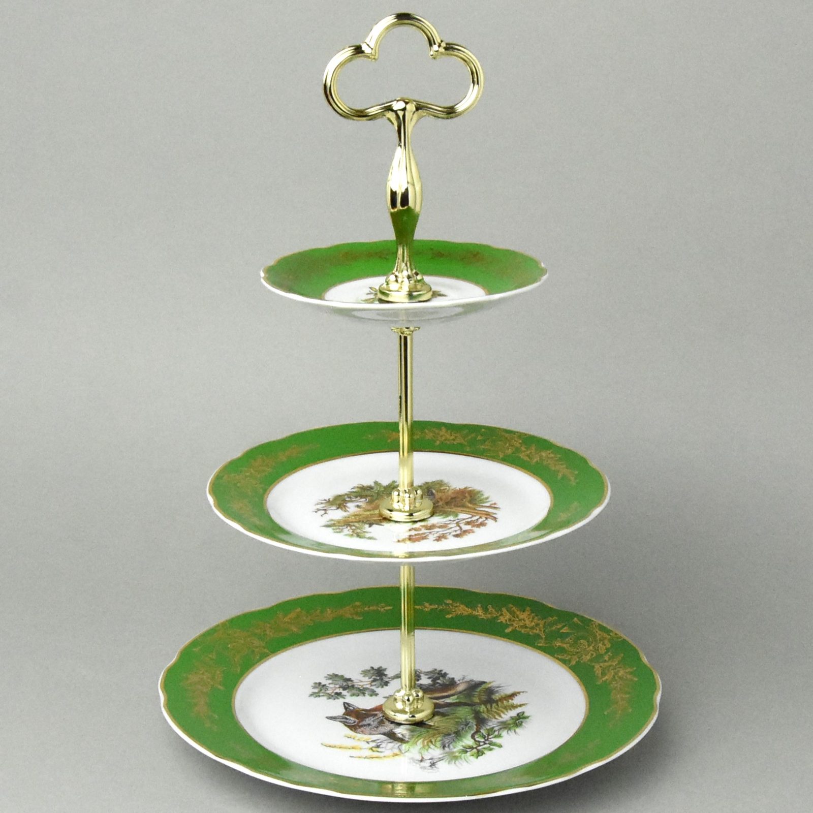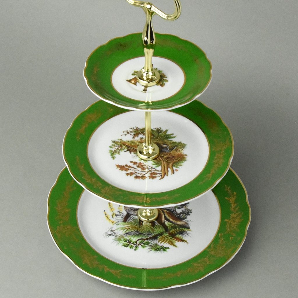 Etažer 3 díl. 34 cm, Mary-Anne, zelený myslivec, Leander Loučky