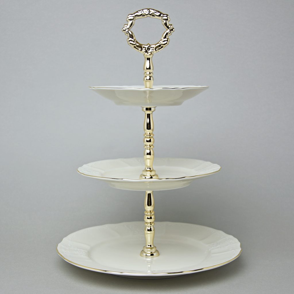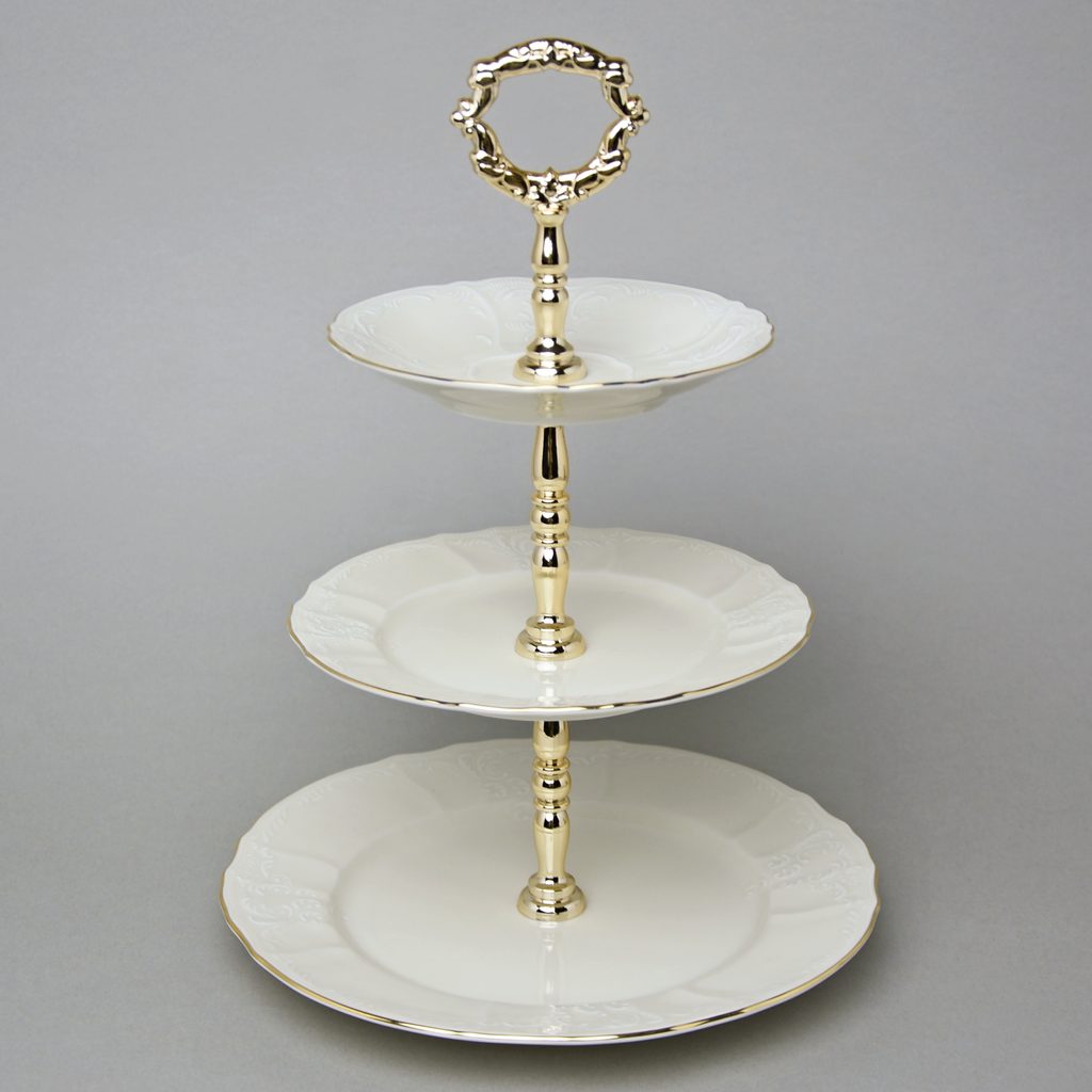 Etažer 3-díl. 34 cm, Thun 1794, karlovarský porcelán, BERNADOTTE ivory + zlato