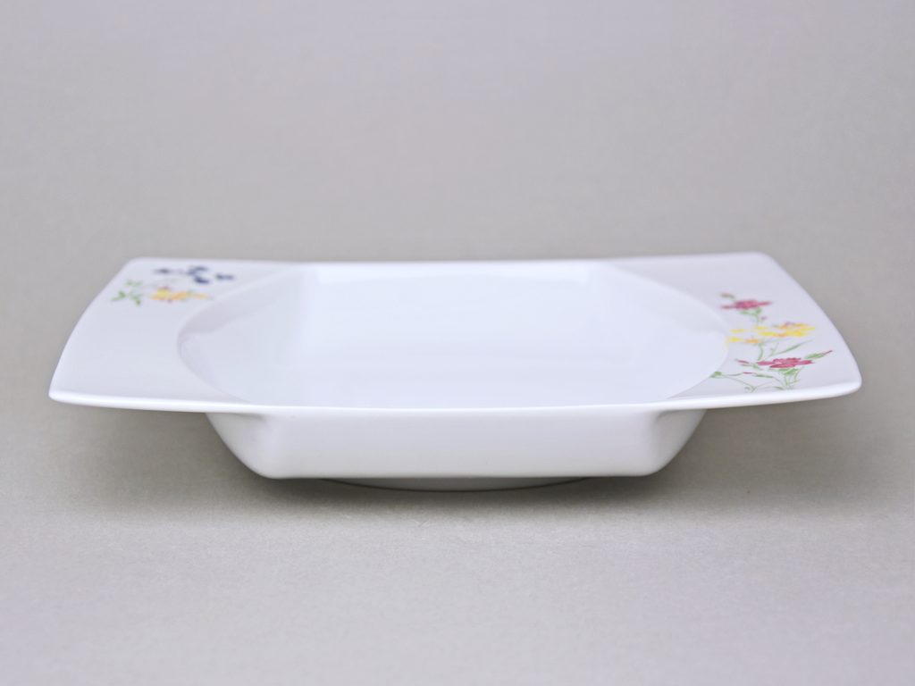 Talíř hluboký z kolekce EYE se svěžím dekorem lučního kvítí od tradiční české porcelánky Thun 1794.