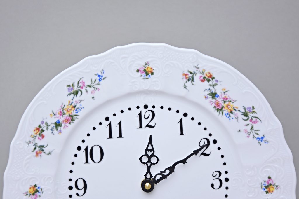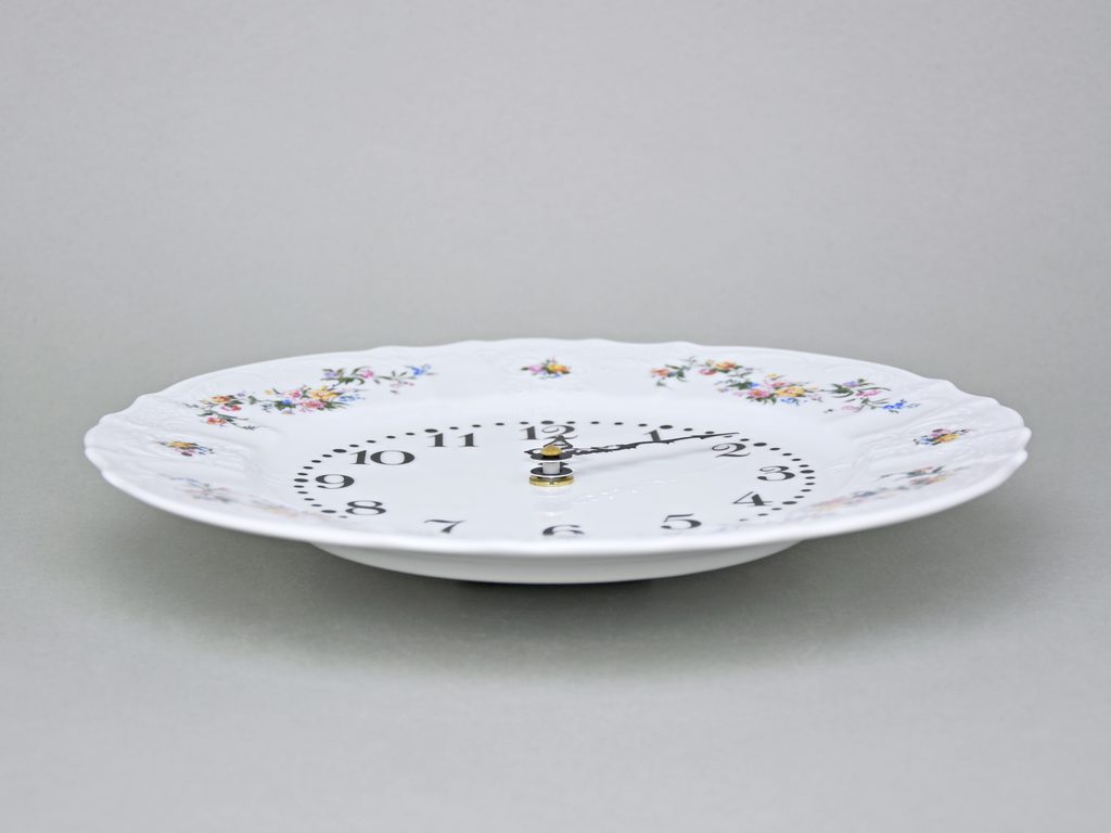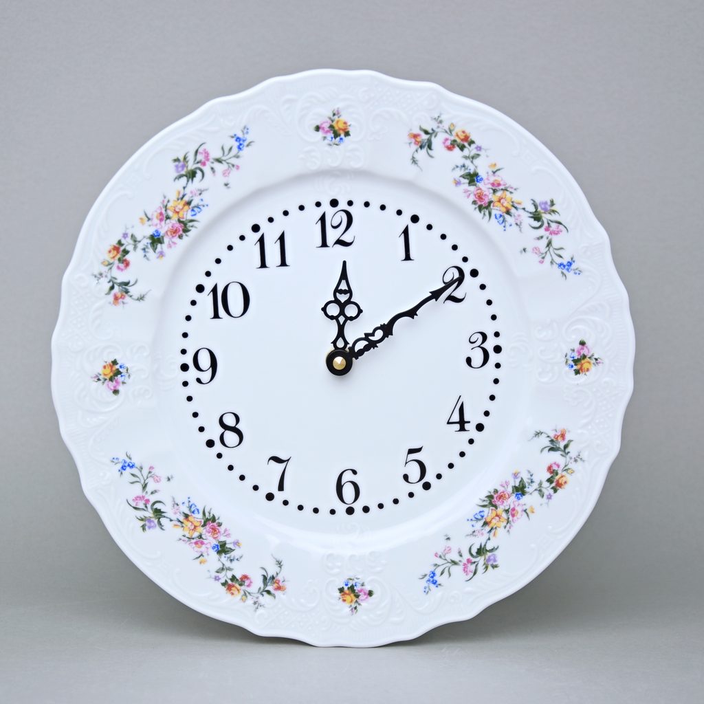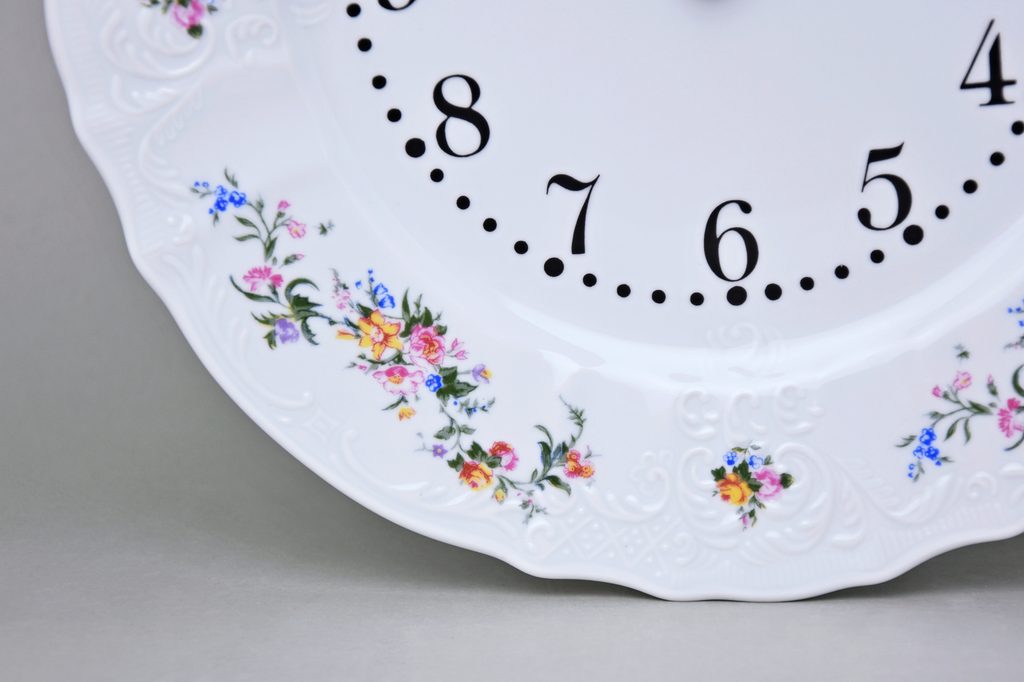 Hodiny nástěnné 27 cm, Thun 1794, karlovarský porcelán, BERNADOTTE bílá + kytičky