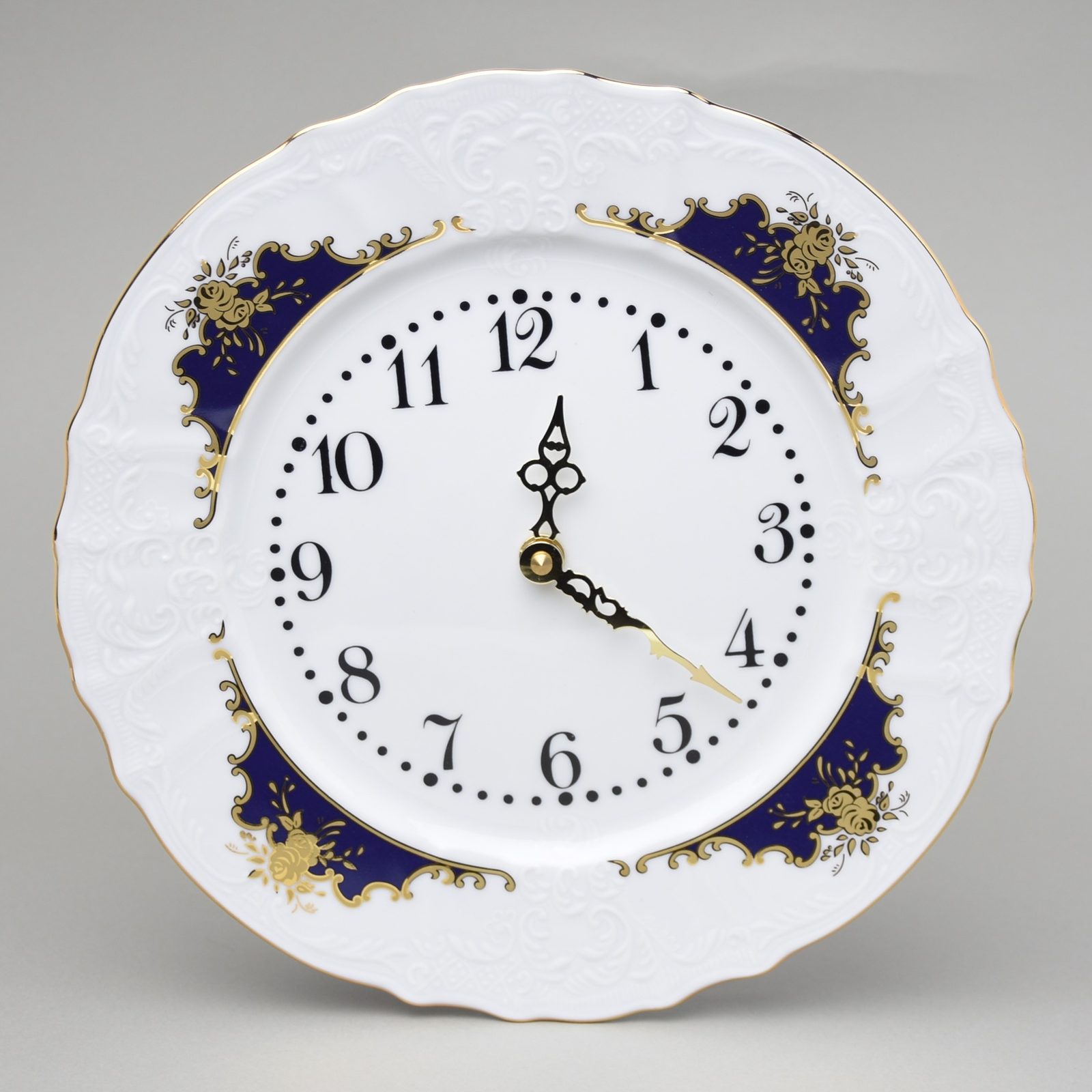 Hodiny nástěnné 27 cm, Thun 1794, karlovarský porcelán, BERNADOTTE zlato-kobalt