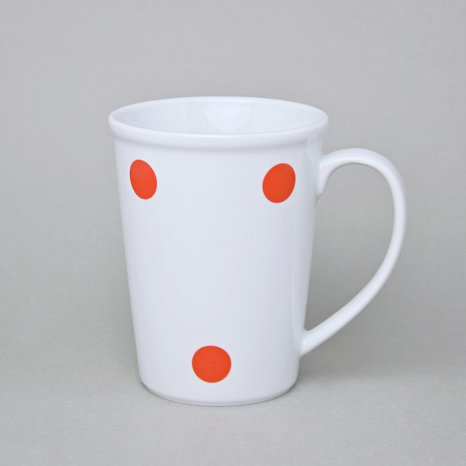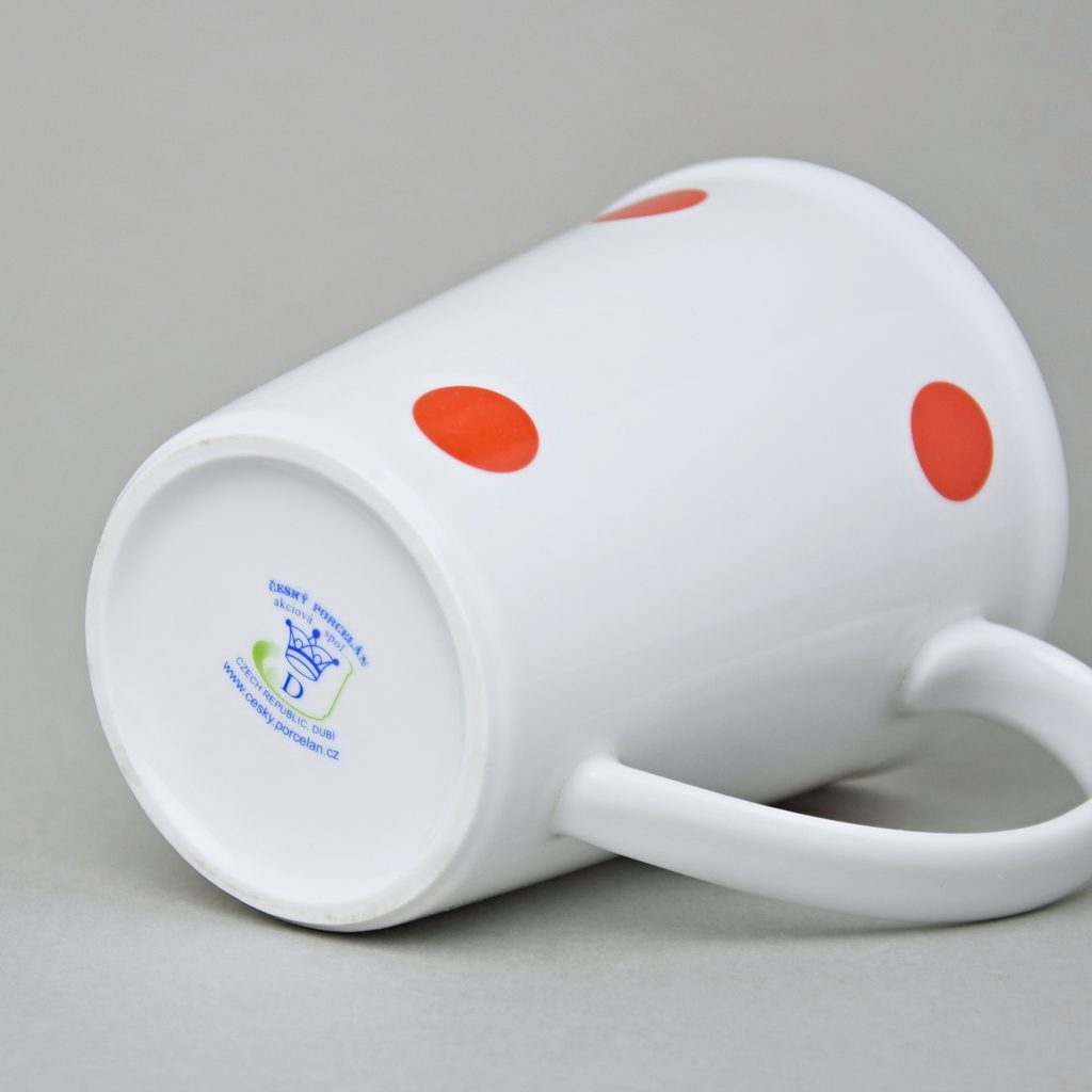 Oblíbený velký hrnek Erin o objemu 420 ml s dekorem červených puntíků. Český porcelán a.s.