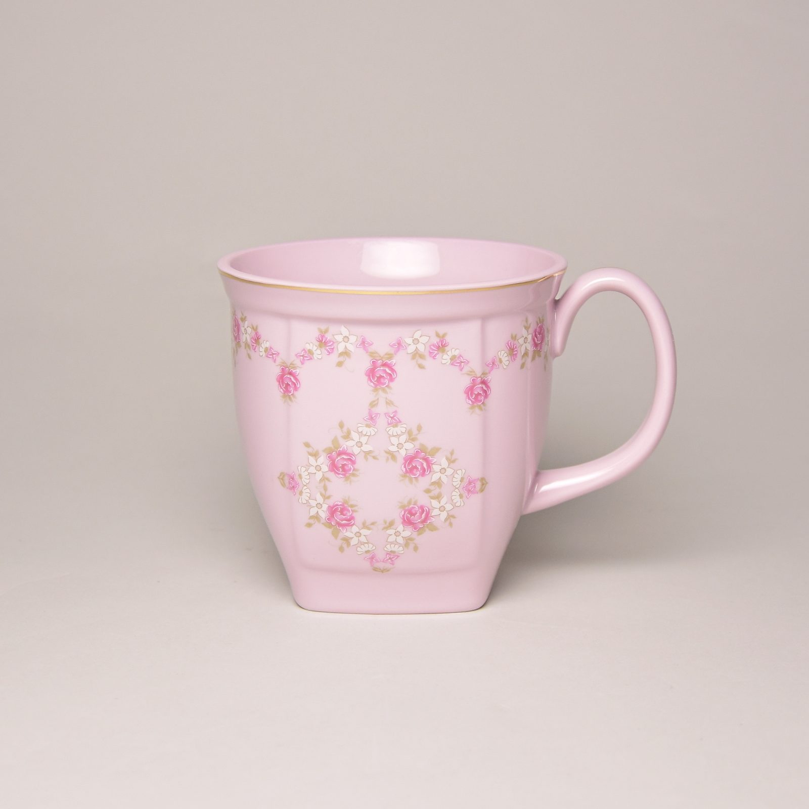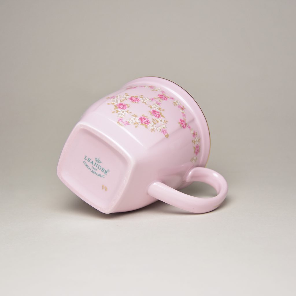 Hrnek hranatý 0,3 l dekor 158, Leander, růžový porcelán