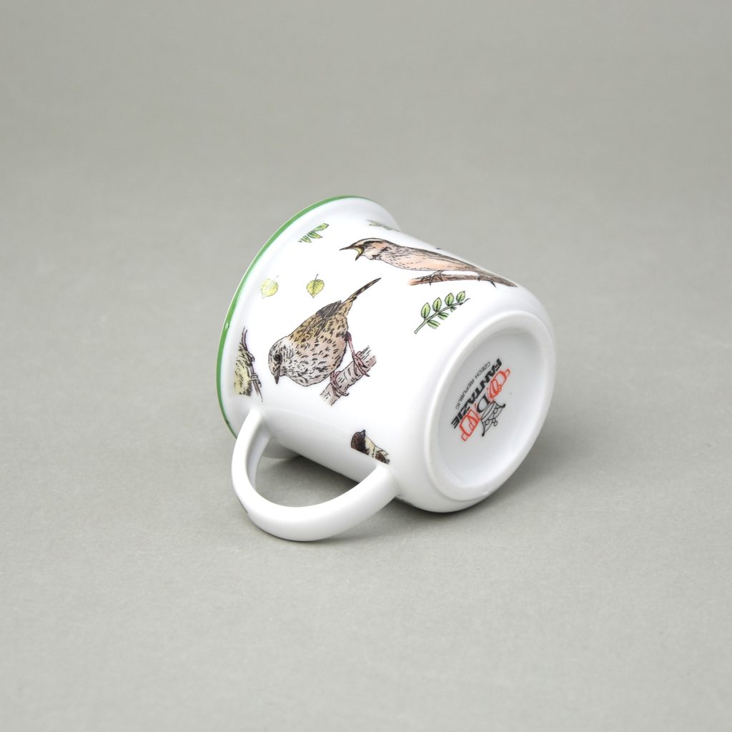 Krásný malinký hrníček s dekorem ptáčků. Retro porcelánový "plecháček" od výrobce Český porcelán, a.s. vhodný na malou kávu espresso.