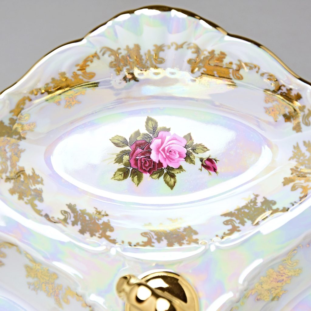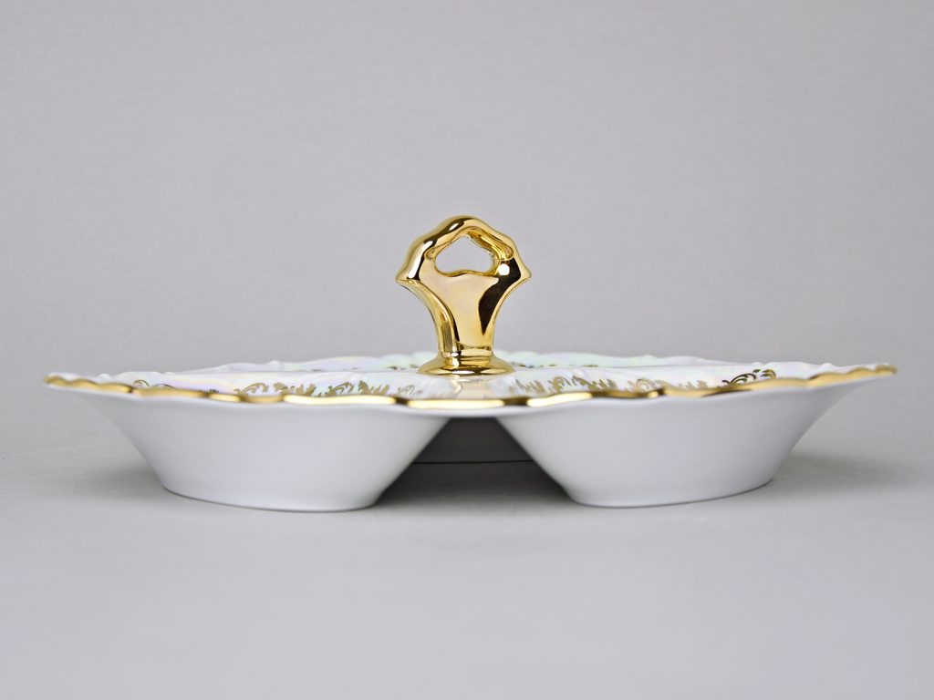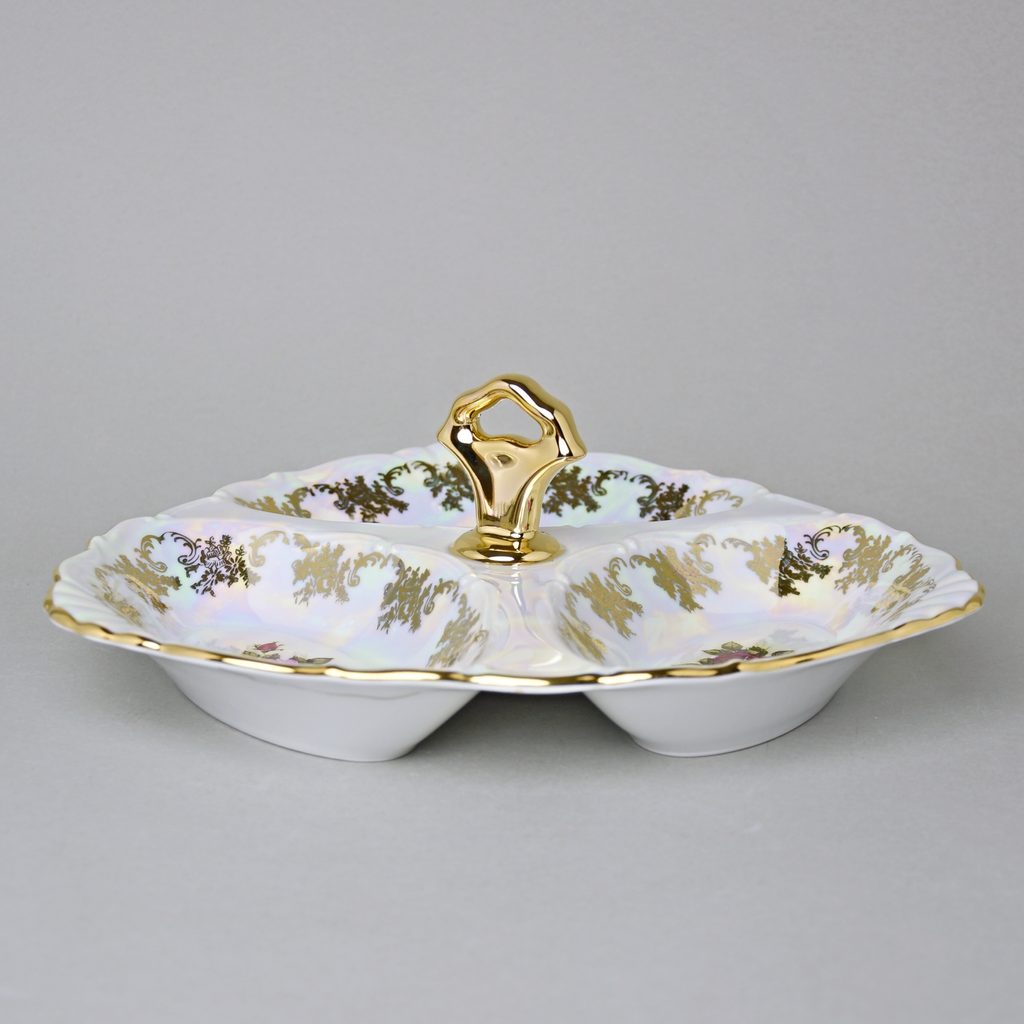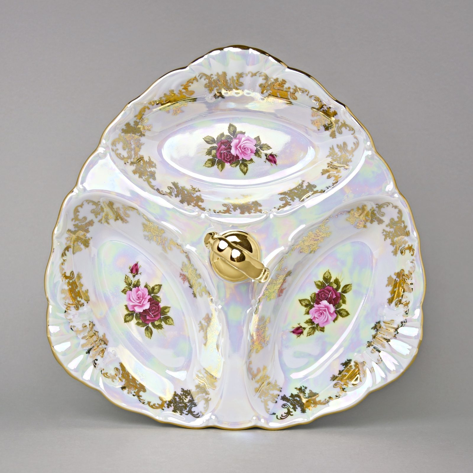 Velký zdobný kabaret na drobné sladkosti / oříšky / ovoce aj. Porcelánový kabaret vyroben v tradiční porcelánce Český porcelán a.s., ruční dekorace: Roman Lidický, Carlsbad. Dekor Růže Cecily