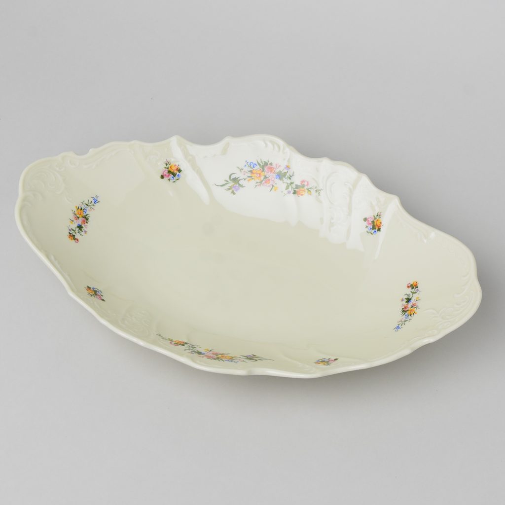 Koš na chléb a pečivo 34 cm, Thun 1794, karlovarský porcelán, BERNADOTTE ivory + kytičky